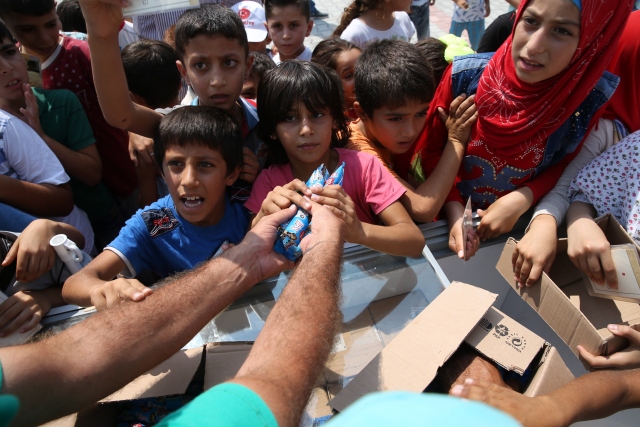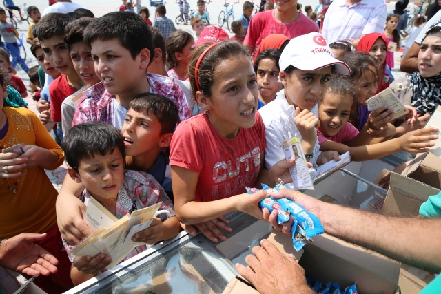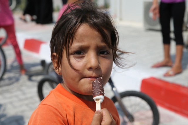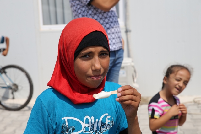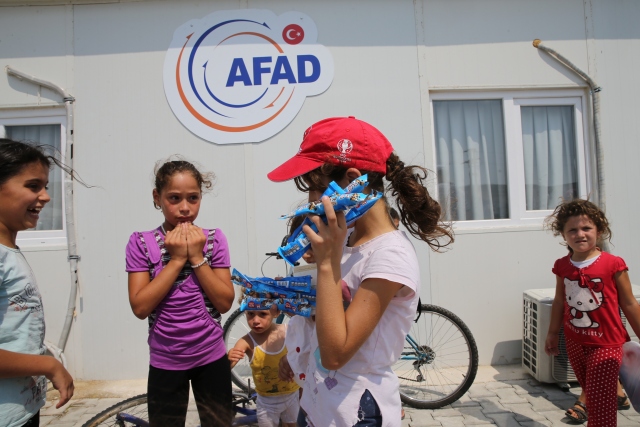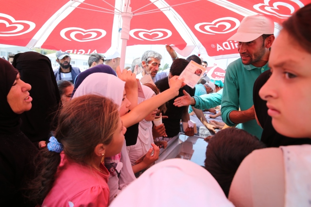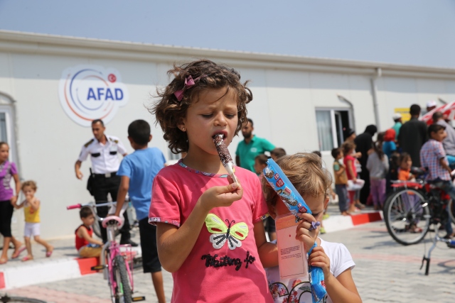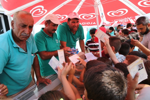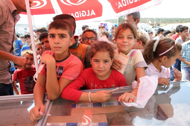 Hatay'ın Altınözü ilçesindeki Boynuyoğun Konteyner Kentinde kalan çocuklara 15 bin dondurma dağıtıldı. Kamptaki Başbakanlık Afet ve Acil Durum Yönetimi (AFAD) görevlilerinin talebi üzerine Tekirdağ'daki bir dondurma firması tarafından, kamptaki çocuklara dağıtılmak üzere 1 kamyon dondurma gönderildi. Yaklaşık 8 bin kişinin kaldığı kampın meydanına getirilen toplam 15 bin dondurmayı almak için onlarca çocuk sıraya geçti.