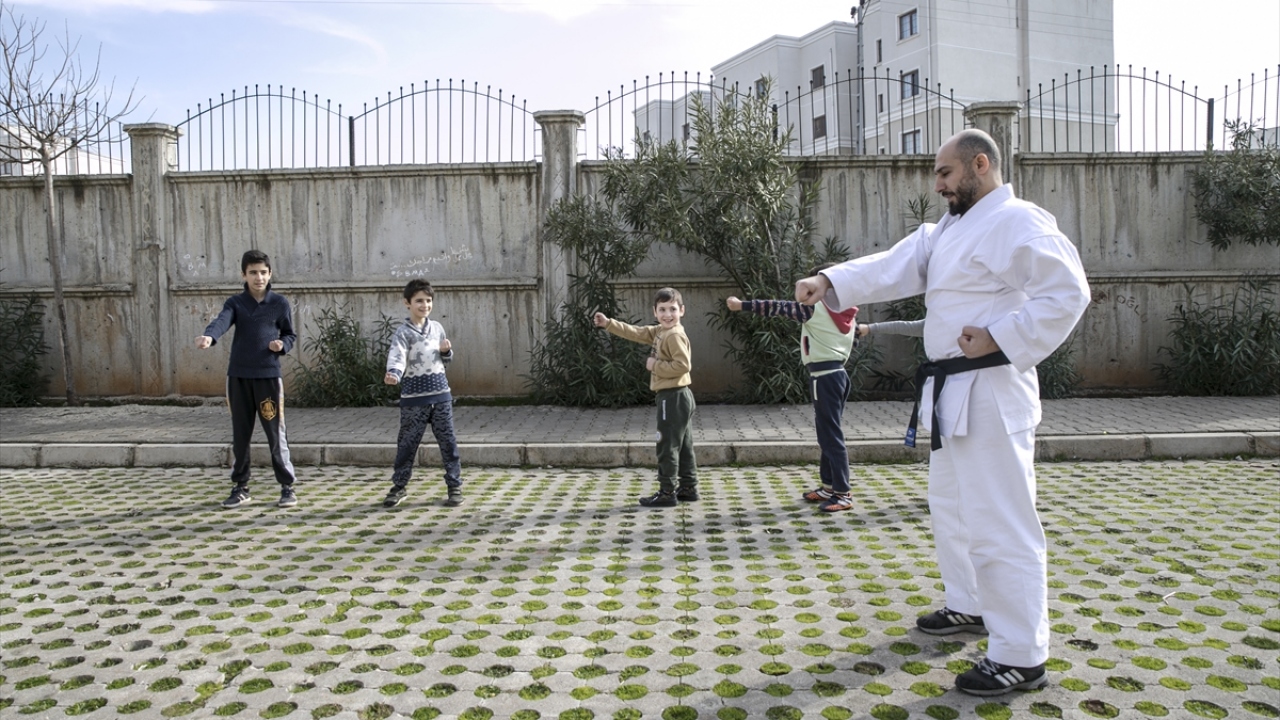 Suriyeli eski milli karateci, çocuklara gönüllü antrenörlük yapıyor