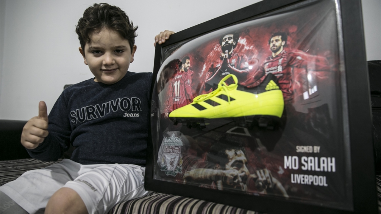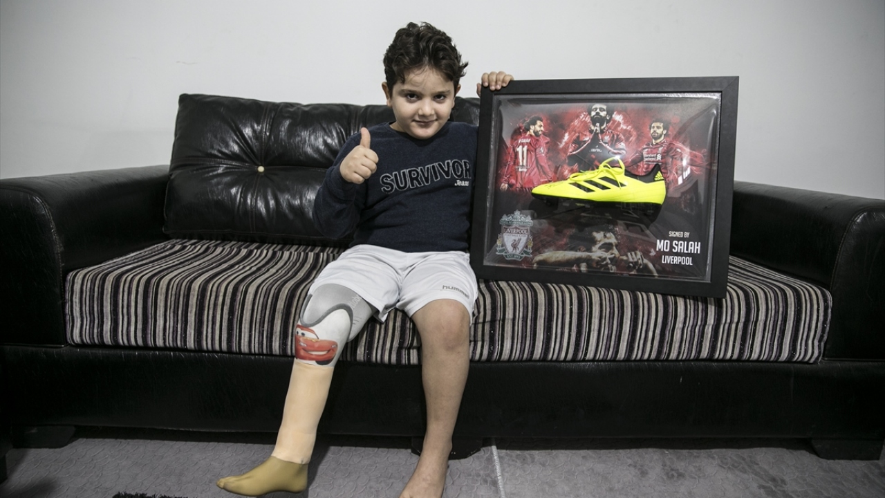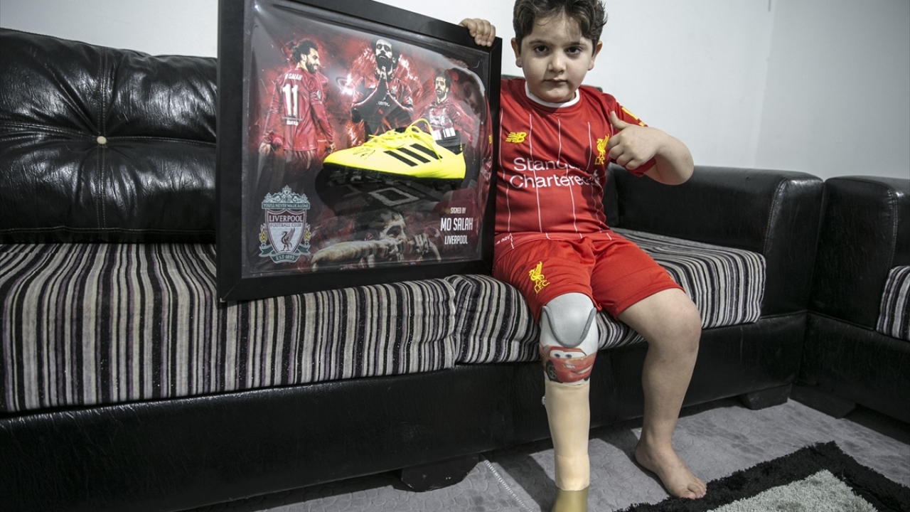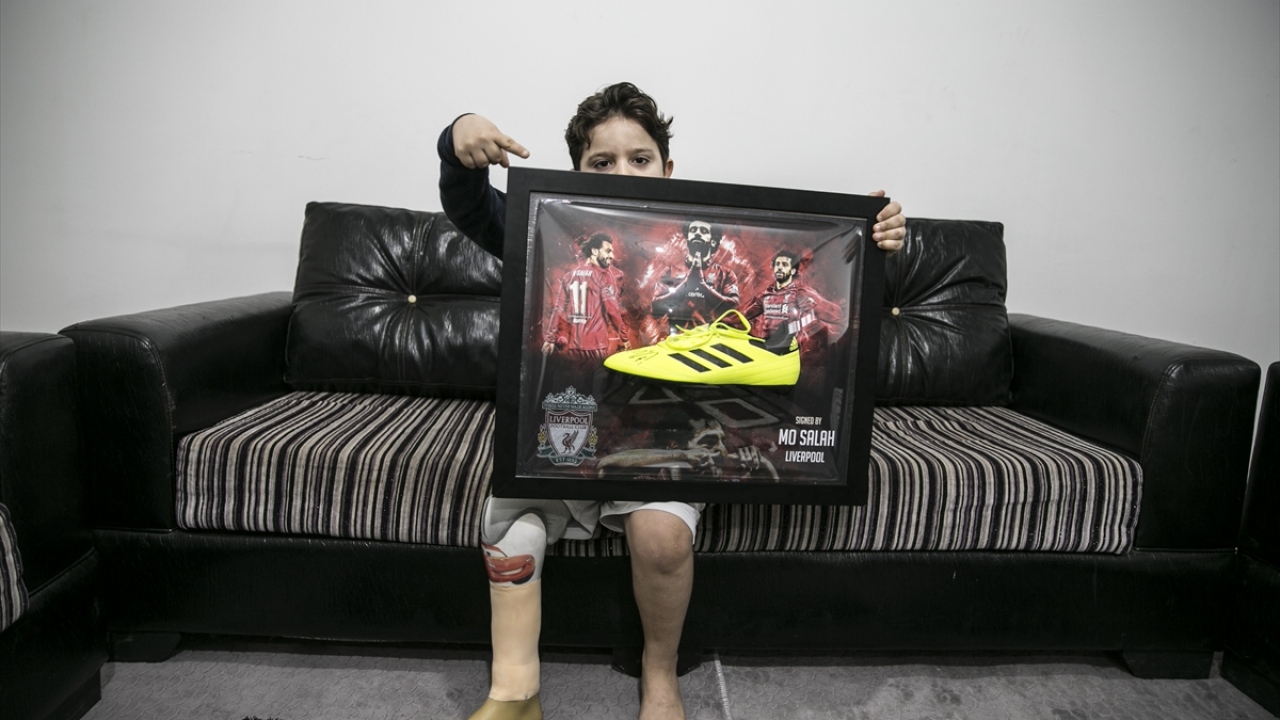 Suriye'nin İdlib kentinde savaş uçaklarından atılan bombalar sonucu sağ bacağını kaybeden ve sığındığı Türkiye'de protez bacak takılan 8 yaşındaki Hamis el Gacir, hayranı olduğu Liverpool'un Mısırlı yıldızı Muhammed Salah'ın imzalı krampona ve formaya kavuşmanın sevincini yaşadı.
