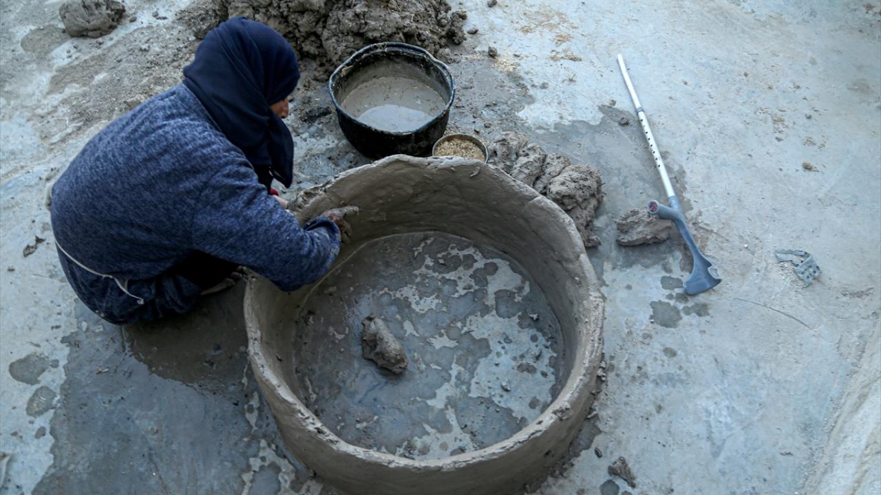 Ali, "Tandırı üç aşamada yapıyoruz. Öncelikle alt tabakasını yapıp kurutuyoruz. Alt kısım tamamlandıktan sonra orta tabakayı yapıp kurutuyoruz. Biraz kuruduktan sonra elimize aldığımız tahtalar yardımıyla iç ve dış yüzeylerini düzleştiriyoruz." dedi.