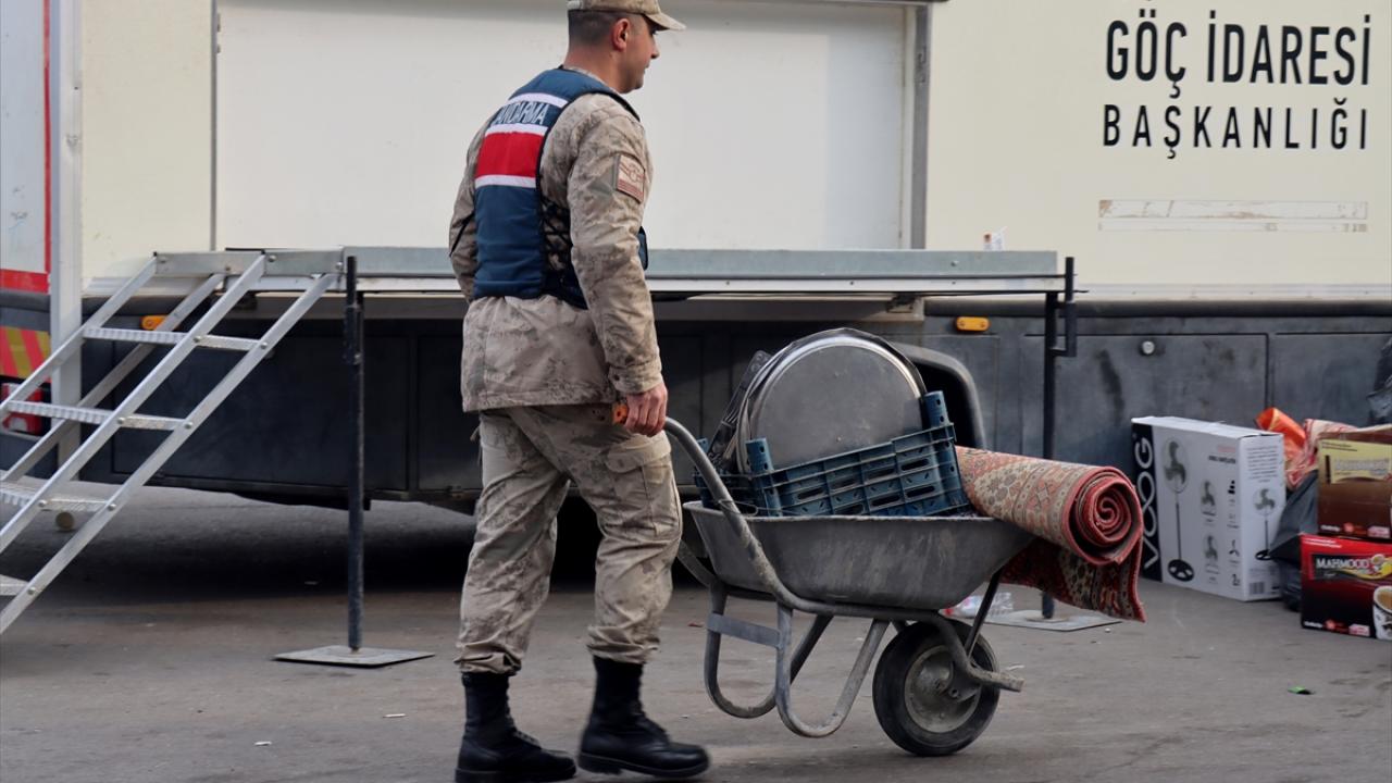 Ellerinde veya el arabalarında taşıdıkları kıyafet, yatak, döşek ve mutfak gereçleri gibi eşyalarını da yanlarında götüren Suriyelilere, jandarma ve İl Göç İdaresi Müdürlüğü ekipleri de yardımcı oluyor.
