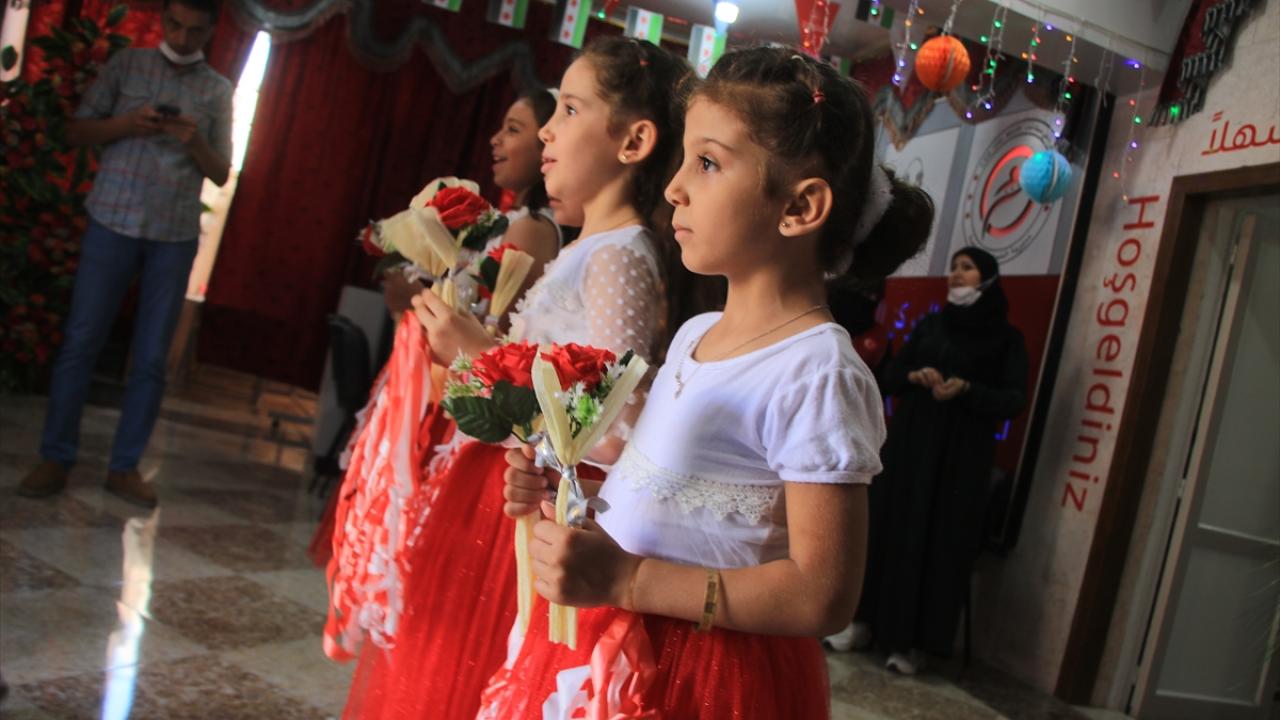 Merkezde eğitim alan öğrencilerin gösteriler düzenlediği törende, Gaziantep Valisi Davut Gül başarılı öğrencilere çeşitli hediyeler verdi.