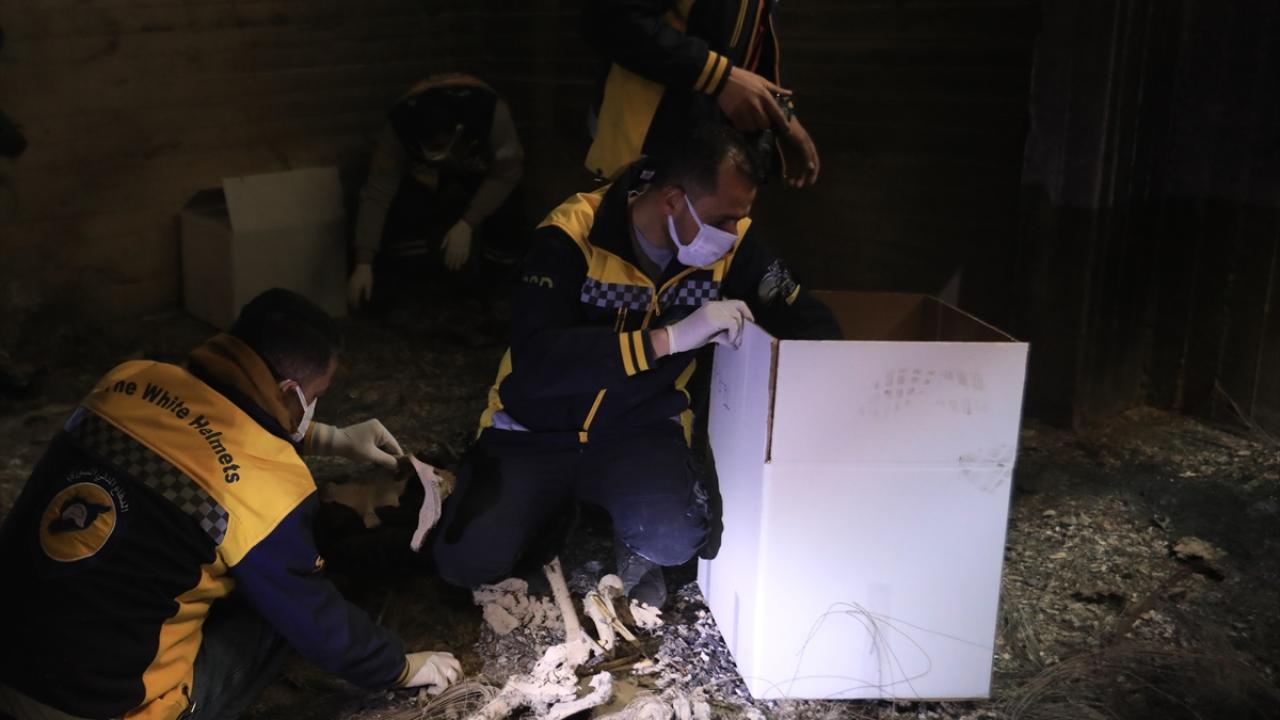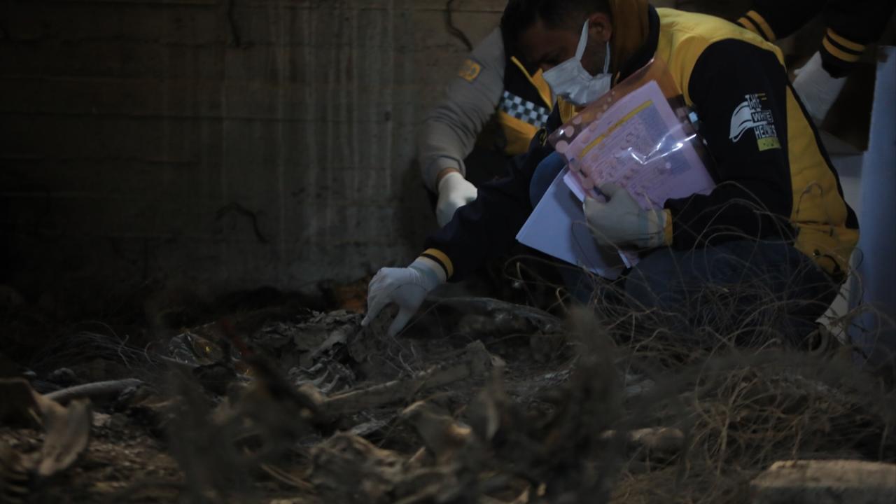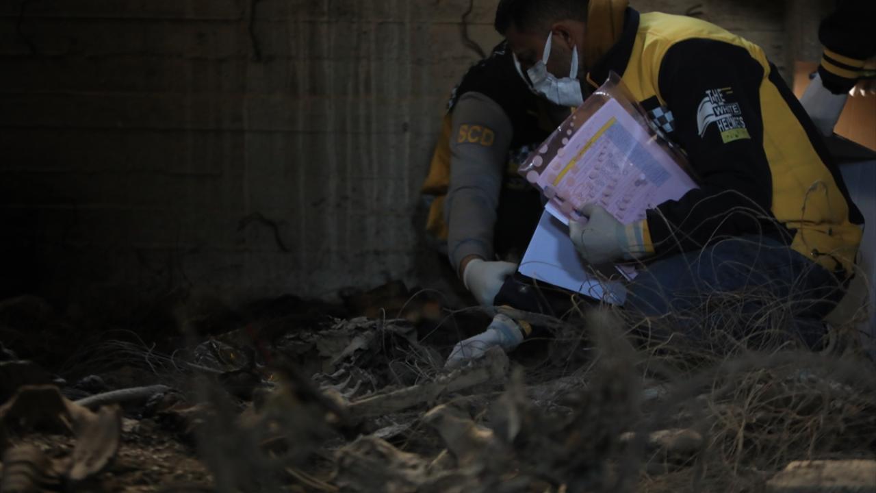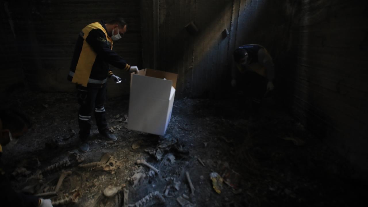 Sivil Savunma ekibinden Ammar Salmo, bir vatandaşın ihbarı üzerine binaya intikal eden ekiplerin öldürüldükten sonra yakılmış ceset kalıntılarına ulaştığını belirtti.