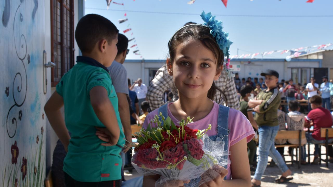 Aynı okuldan 3. sınıf öğrencisi Merve Gaddur, düzenlenen törende çok eğlendiklerini dile getirerek, "Öğretmenimi çok özledim. Arkadaşlarımla aynı kampta yaşıyoruz. Eğitimimi tamamlayıp öğretmen olmak istiyorum" diye konuştu.