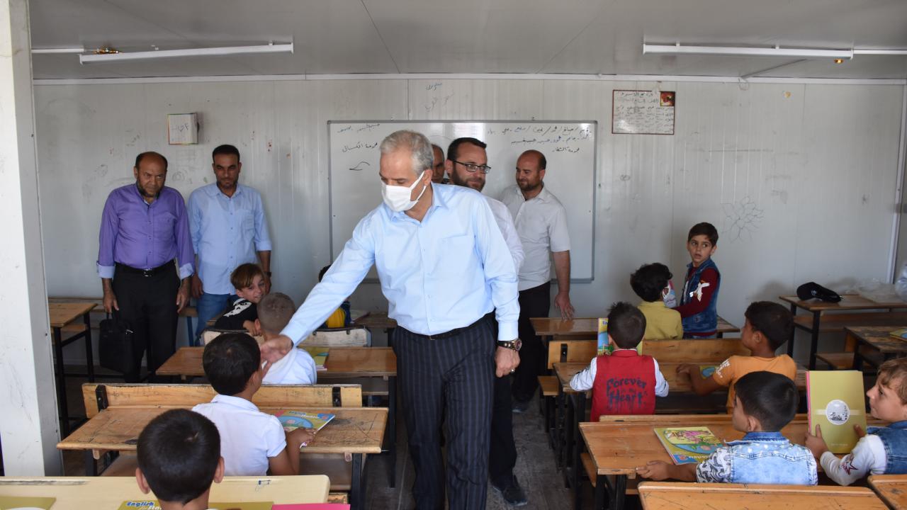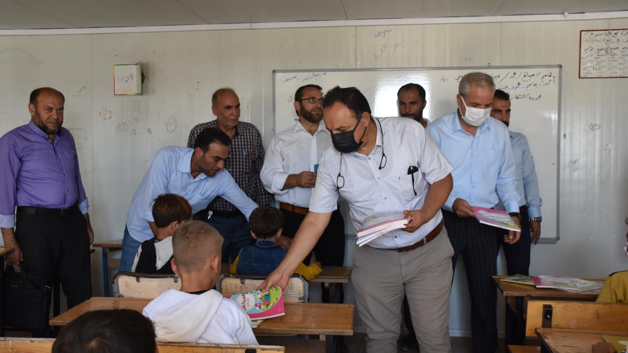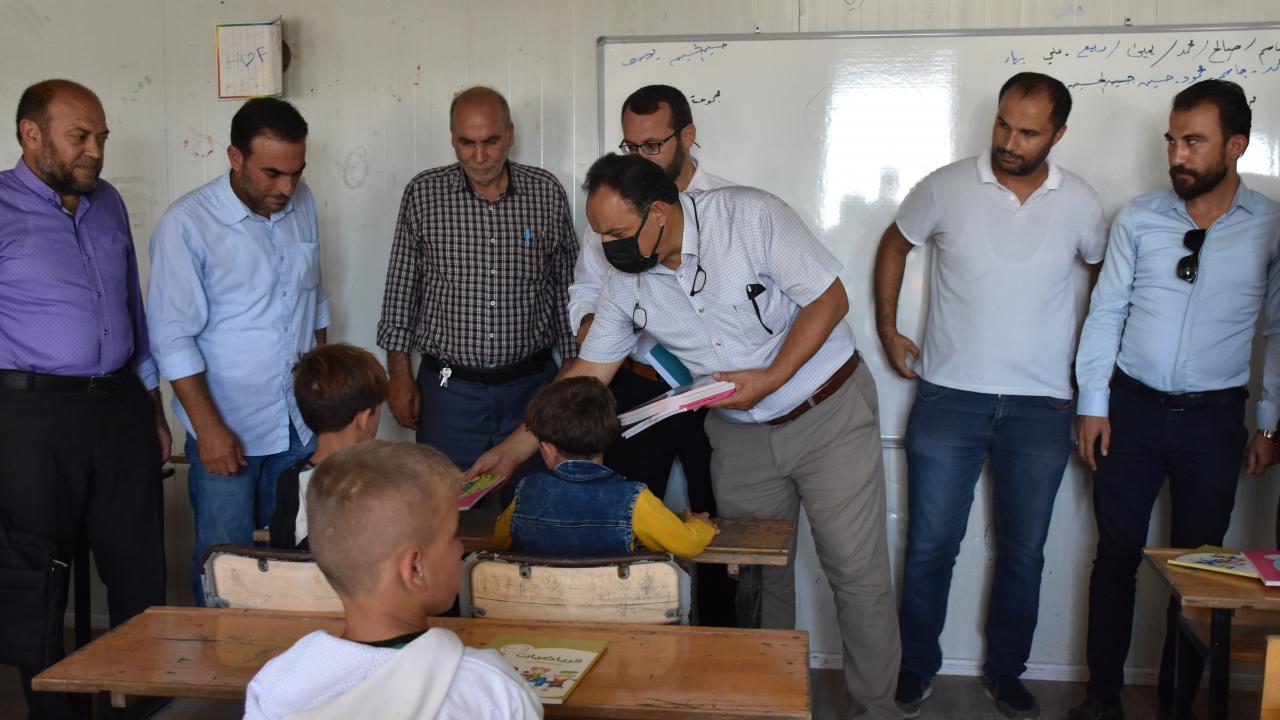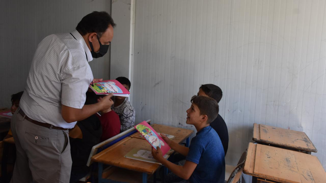 Kilis Milli Eğitim Müdürü Kurt ve beraberindeki heyet düzenlenen törenin ardından sınıfları gezerek öğrencilere ders kitapları dağıttı.