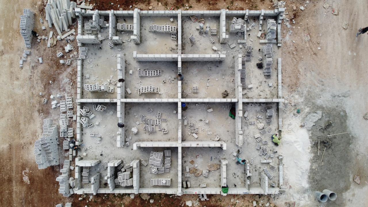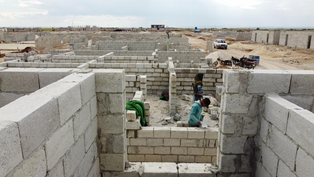 Uluslararası yardım kuruluşları ve Türk sivil toplum kuruluşlarının (STK) desteğiyle Suriye topraklarında başlatılan briket ev çalışmaları devam ediyor.