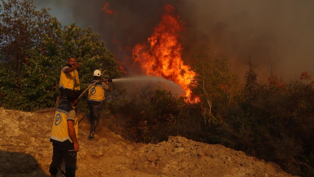 Sivil Savunma (Beyaz Baretliler) tarafından yapılan açıklamaya göre, Bayırbucak`ın Sukkariye ve Nisbi köylerinde dün başlayan yangın henüz kontrol altına alınamadı.
