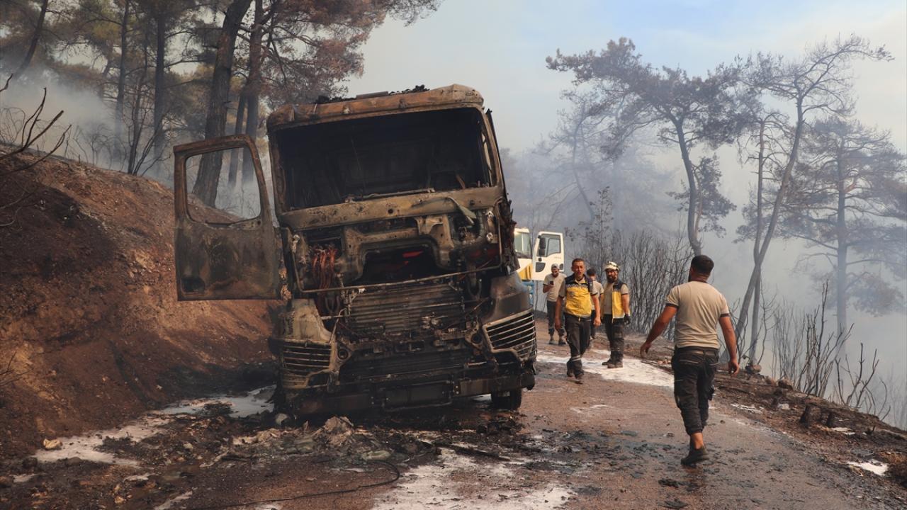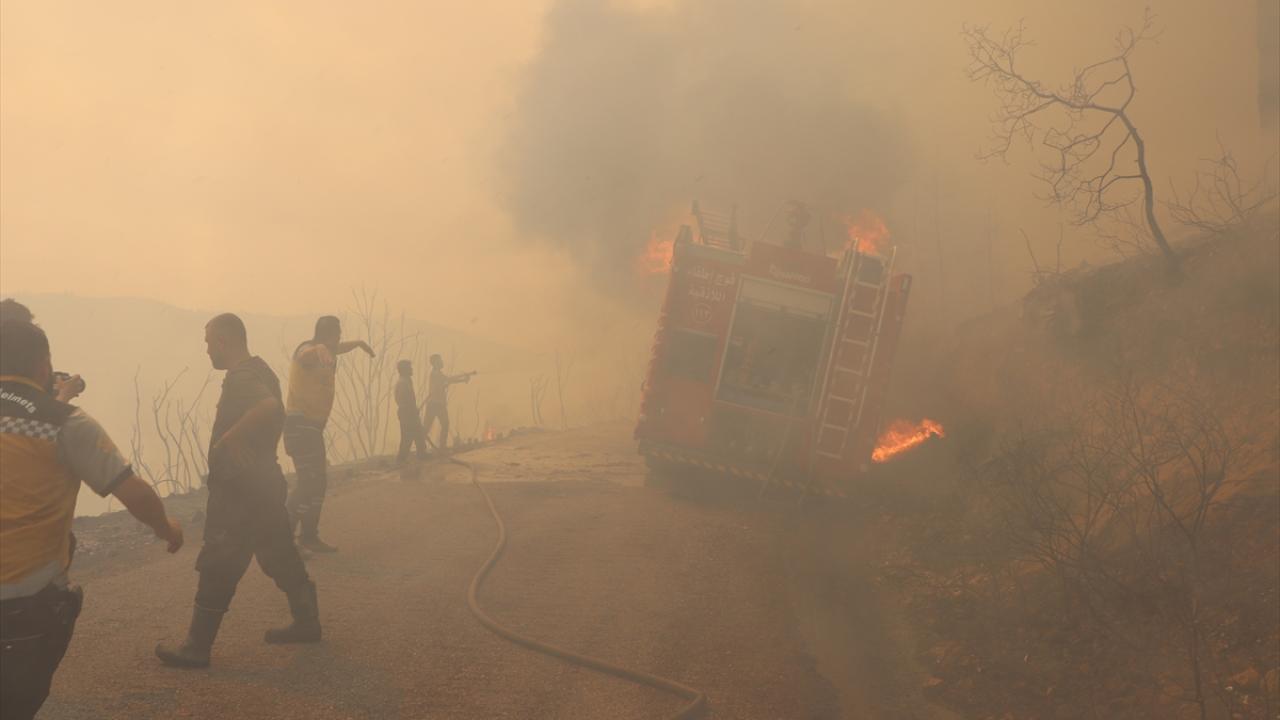 Suriye'nin Lazkiye ilindeki orman yangınında 3 itfaiye görevlisi yaralandı