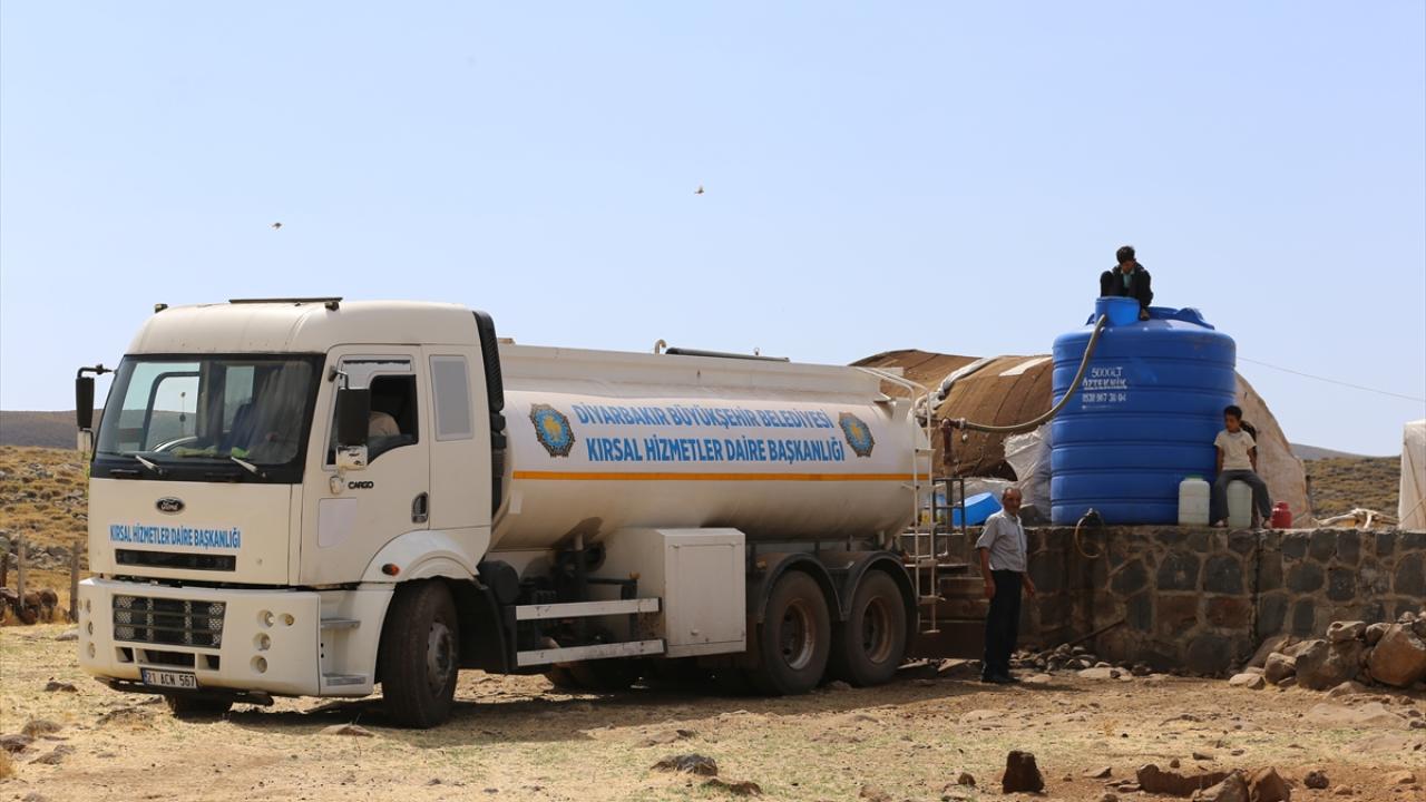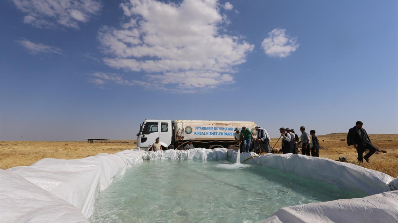 Diyarbakır Büyükşehir Belediyesi Kırsal Hizmetler Daire Başkanlığı, kuraklıktan etkilenen besicilerin hayvanlarının su ihtiyacını karşılamaları için mera ve yaylalara tankerle günde 200 ton su taşıyor.