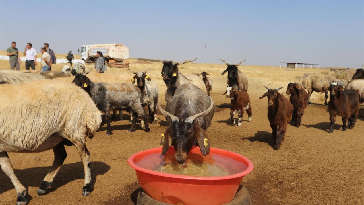 Binlerce küçükbaş hayvanın su ihtiyacının karşılanması amacıyla su depoları ve suvatlara her gün tankerlerle 200 ton su taşınıyor.