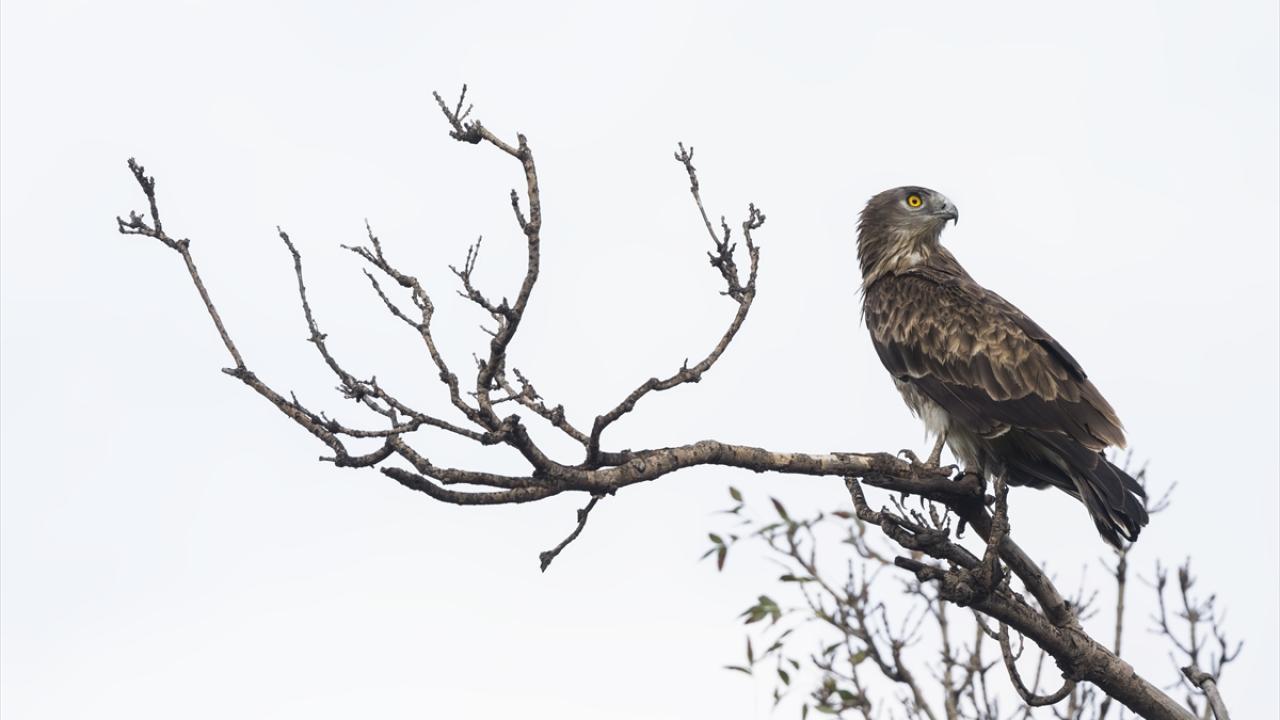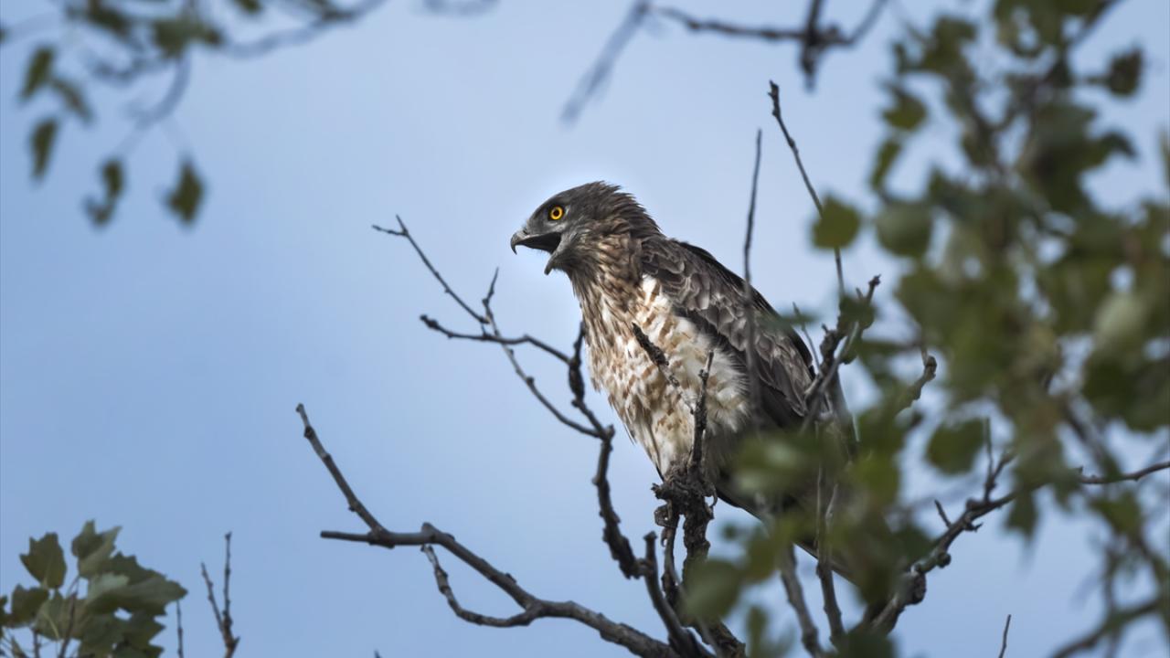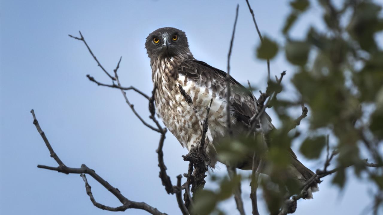 Başta yılan olmak üzere sürüngen avlayarak beslenmesiyle bilinen yılan kartalı, Bursa'daki Karacabey Longozunda görüntülendi.