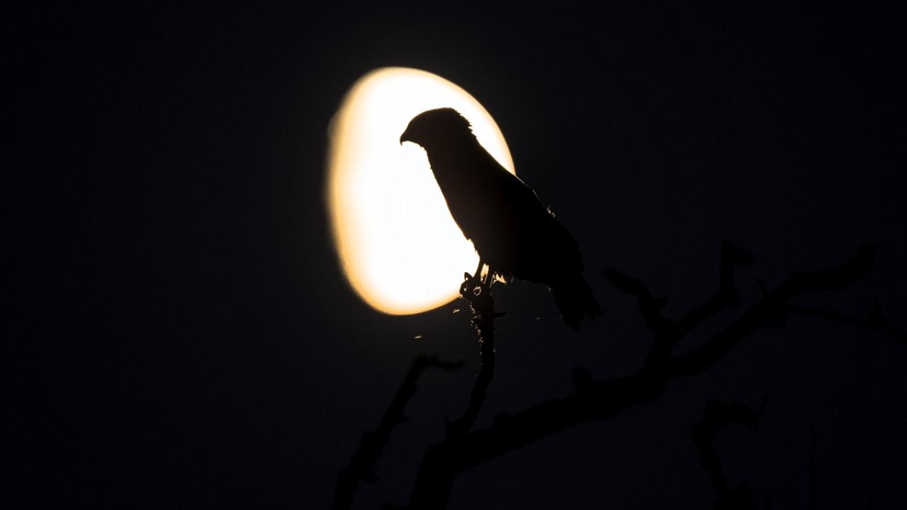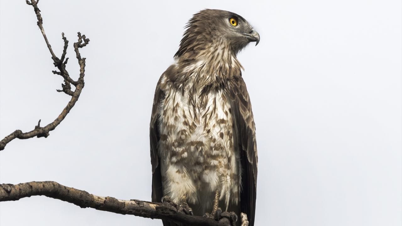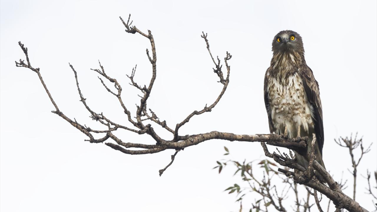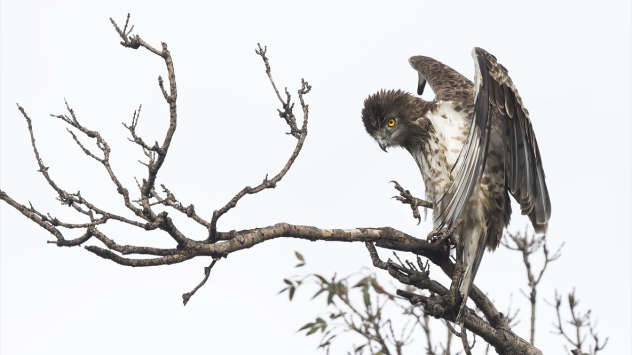 Başta yılan olmak üzere sürüngen avlayarak beslenmesiyle bilinen yılan kartalı, Bursa'daki Karacabey Longozunda görüntülendi.