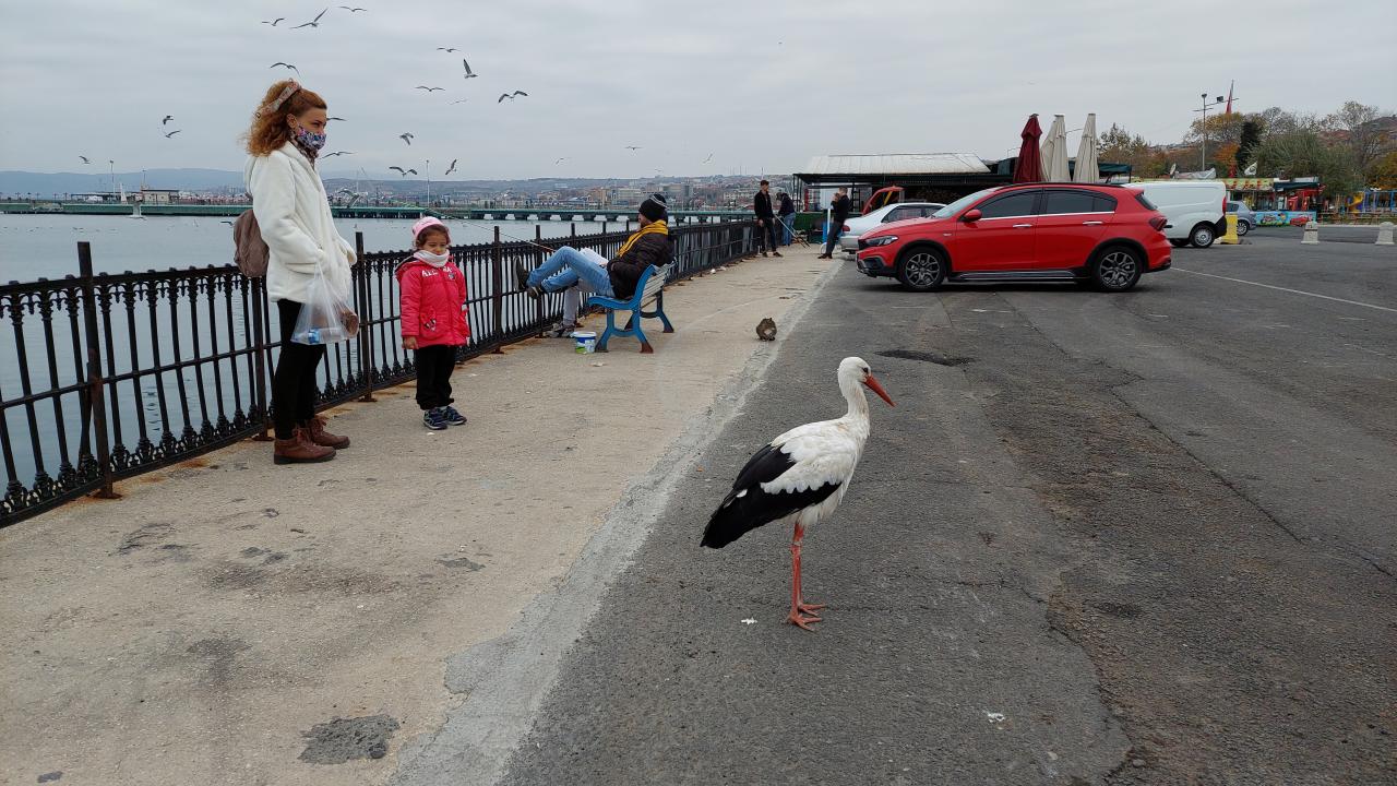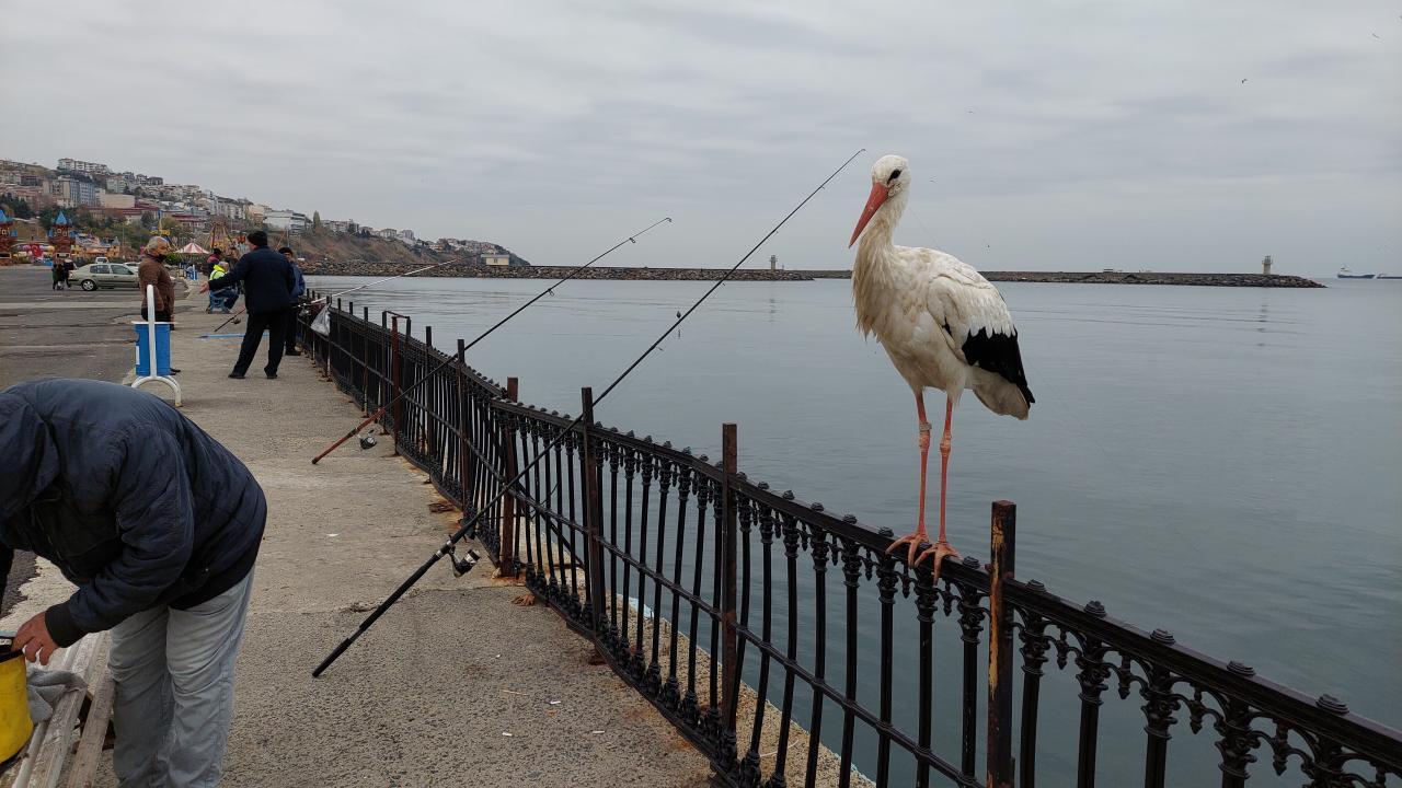 Geceyi bedestende geçiren leylek, gündüzleri ise Tekirdağ sahilde olta ile balık tutan balıkçıların yanından ayrılmıyor. Olta balıkçıları, tuttukları balıkları leylekle paylaşıyor.