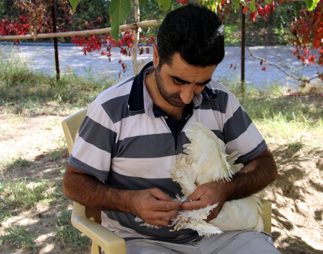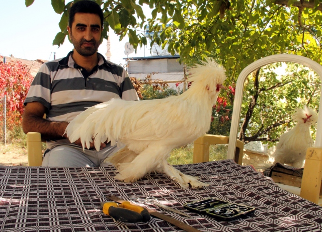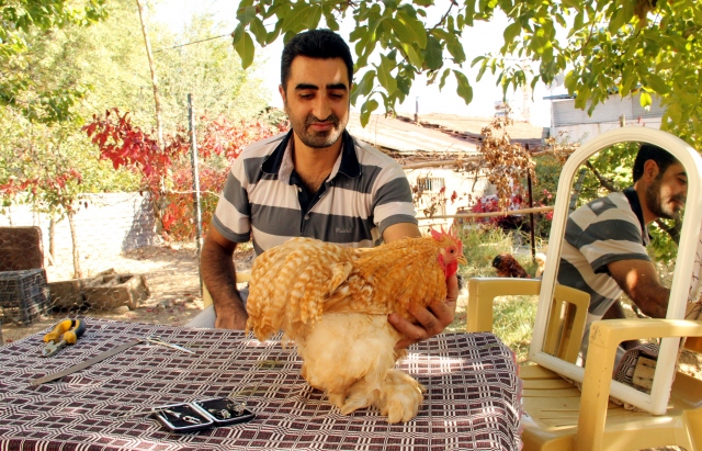 Elazığ'da, hobi olarak süs tavuğu besleyen Murat Sinan (39), yılın belirli dönemlerinde tavuklarının paça ve tüylerini kesip, pedikür bakımı gibi hizmetler yaparak hayvanlarının süsüne süs katıyor. Beslediği süs tavuklarının ırklarının yanı sıra görselliğine de önem veren Sinan, "Bu süs tavuklarının bir takım bakımları var. Periyodik olarak bunlara bir nevi kuaför görevi görmemizi gerektiren bakımlar yapıyorum" dedi.