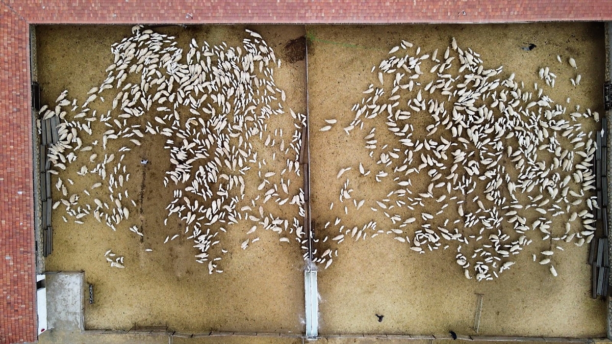 Doğumdan bir süre sonra kuzuları ot ve saman gibi yemlere alıştırmak için annelerinden ayrı ağıllarda barındıran yetiştiriciler, koyunları ise meraya otlamaya götürüyor.