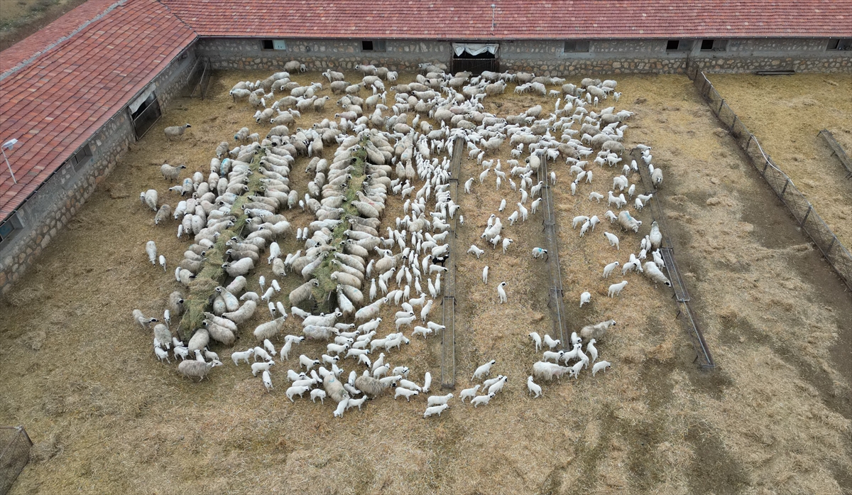 Doğumdan bir süre sonra kuzuları yeme alıştırmak için annelerinden ayrı ağıllarda barındıran çalışanlar, koyunları ise meraya otlamaya götürüyor.