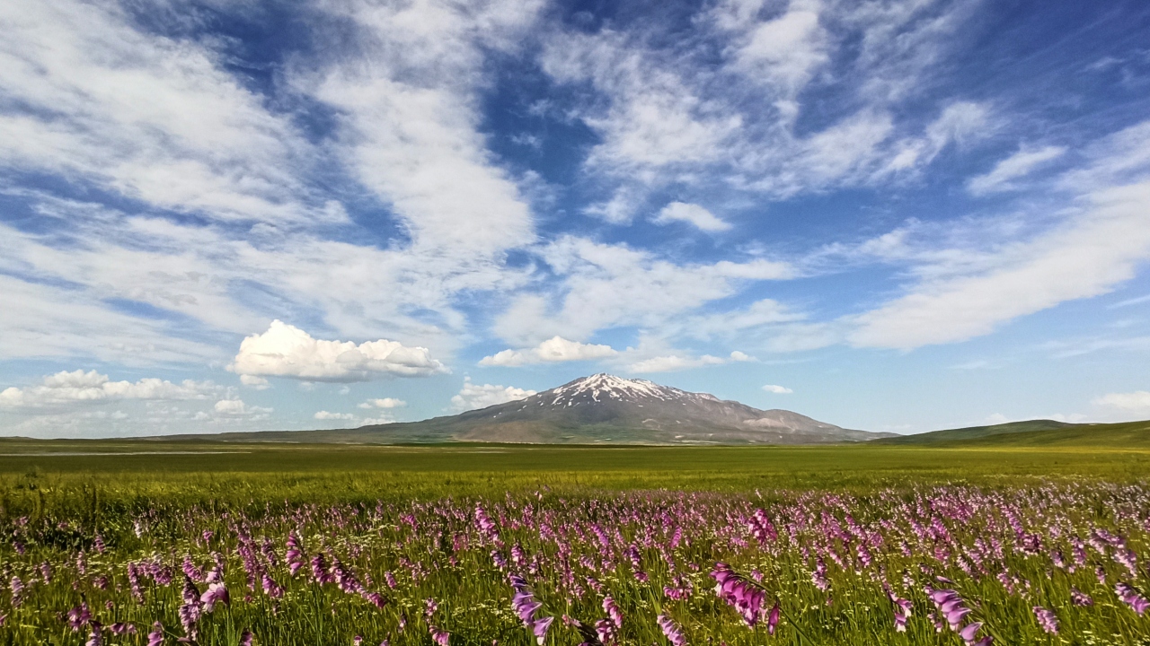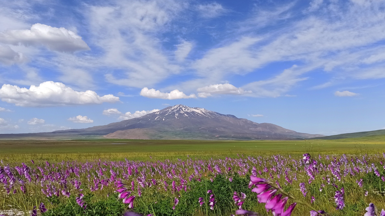 Bitlis’in Adilcevaz ilçesinde bulunan ve açan çiçeklerle renklenen Sütey Yaylası’nın karlı Süphan Dağı ile bütünleşen manzarası görenleri kendine hayran bırakıyor.