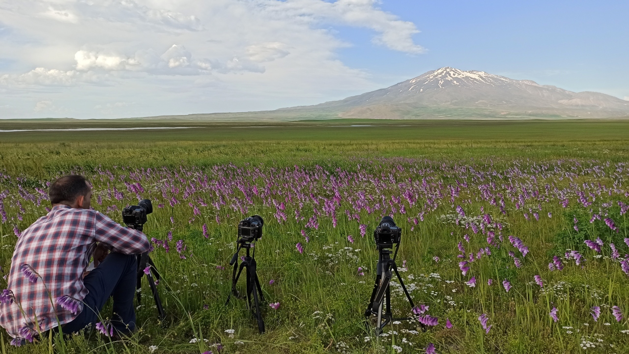 Yaylaya bahar mevsiminde sıklıkla çıkan fotoğrafçılar farklı dönemlerde açan çiçeklerin karlı Süphan Dağı ile oluşturduğu eşsiz manzaraları fotoğraflayarak arşivlerine katıyor.