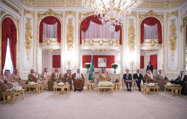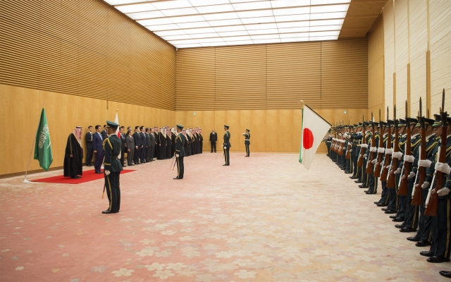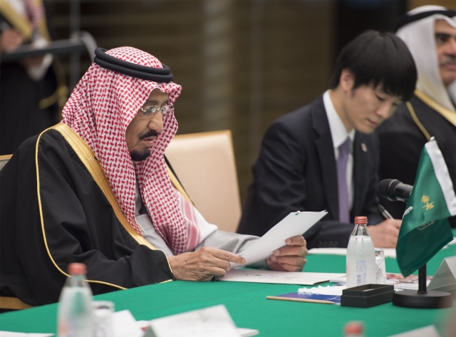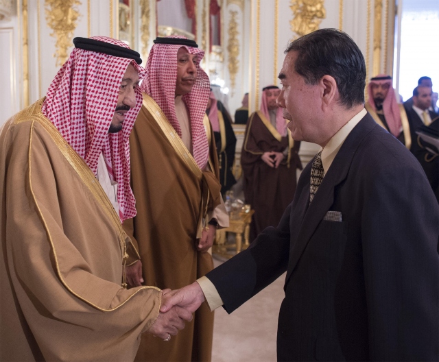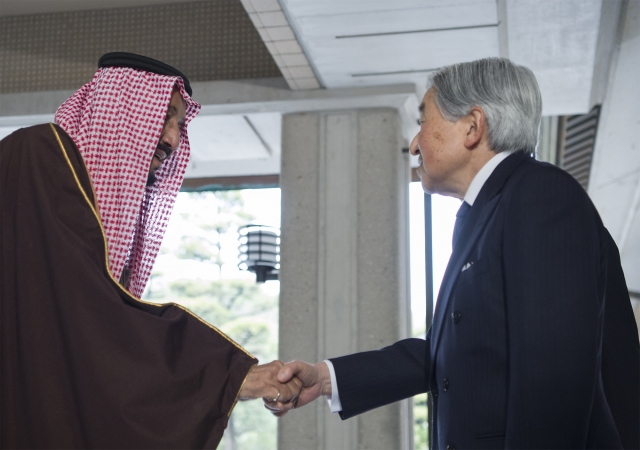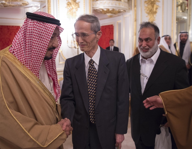 Suudi Arabistan Kralı Selman Abdülaziz el-Suud (solda), Asya turu kapsamında geldiği Japonya'nın başkenti Tokyo'da, ülkenin önde gelen Müslüman alimleriye bir araya geldi.