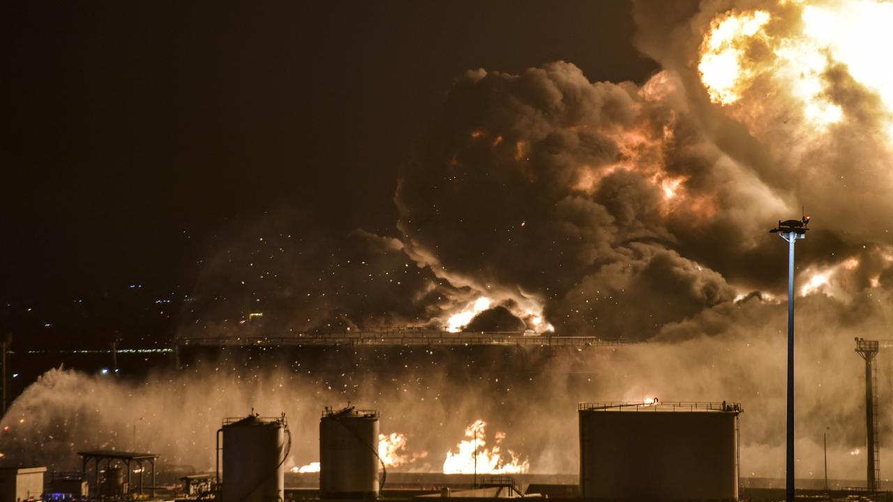 Yemen'deki İran destekli Husilerin düzenlediği saldırı sonucu Suudi Arabistan'ın Cidde kentinde bulunan Saudi Aramco'ya ait petrol tesislerinde yangın çıktı.