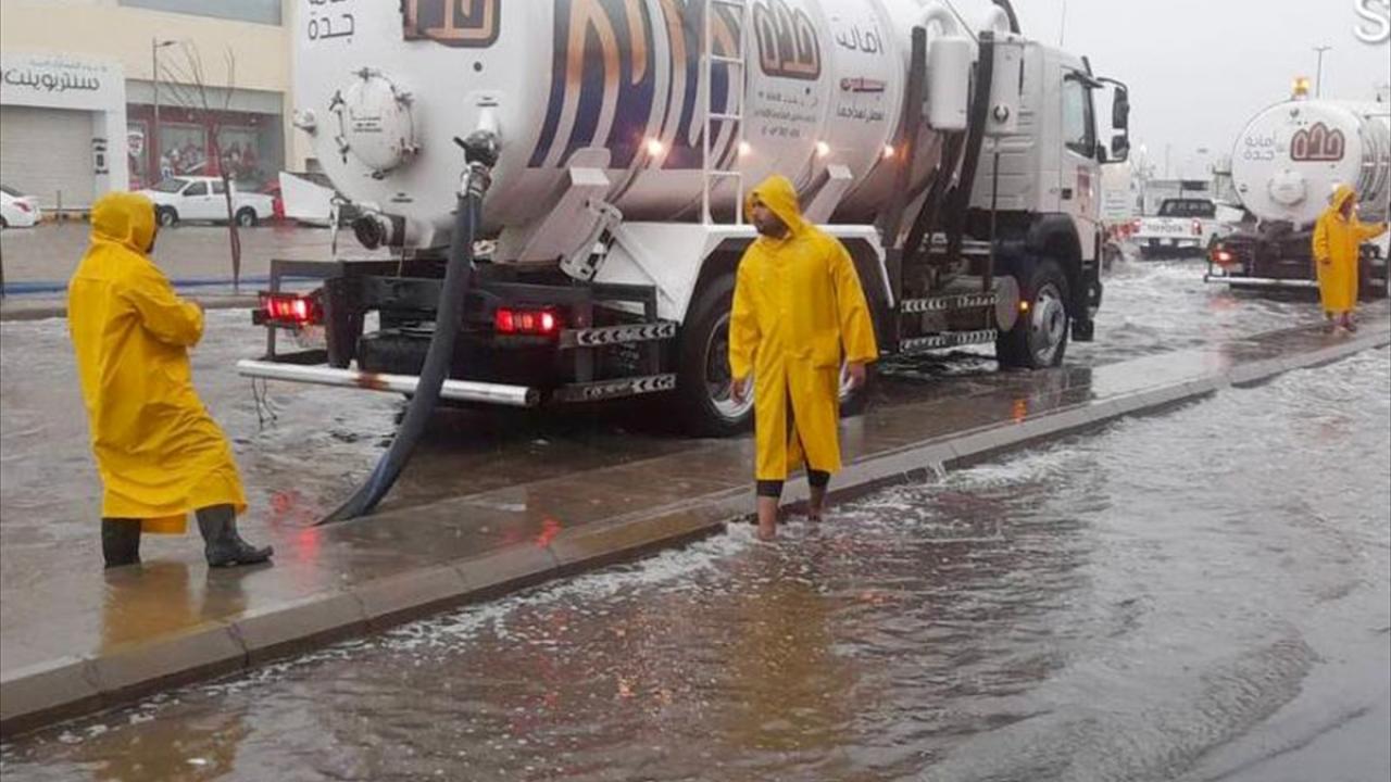 Suudi Arabistan Ulusal Meteoroloji Merkezinin erken uyarı sistemi, şiddetli yağış nedeniyle Cidde`deki uyarı seviyesini "alarm" düzeyine çıkarmıştı.