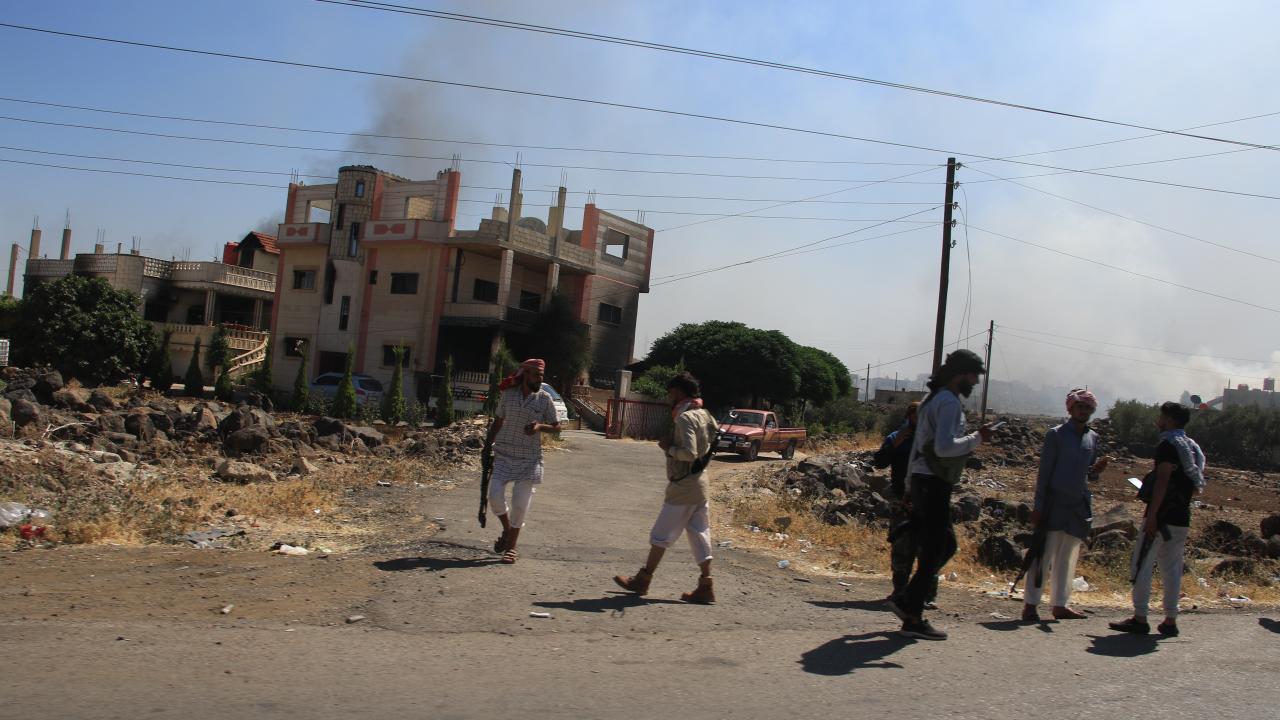Ağır ve hafif silahların kullanıldığı şiddetli çatışmalarda, Dürzi lider Hikmet el-Hecri`ye bağlı güçlerin yoğun keskin nişancı desteğine sahip olduğu görülüyor.