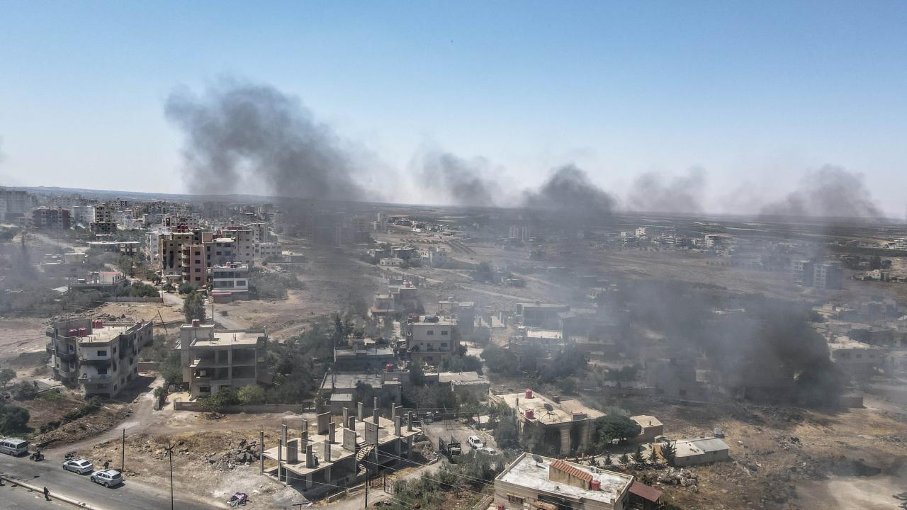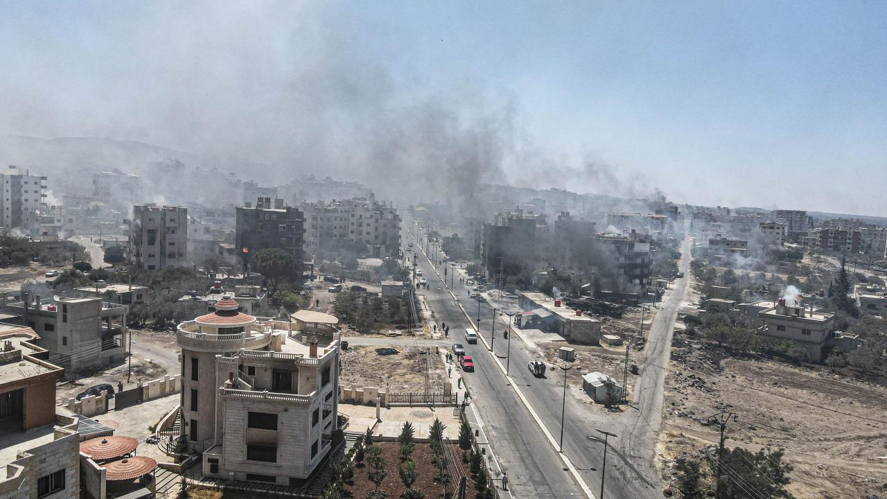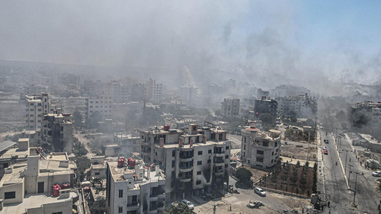 Kent içinden yapılan çekimlerde ve dron görüntülerinde birçok noktadan dumanların yükseldiği görülürken silah sesleri de duyuluyor.