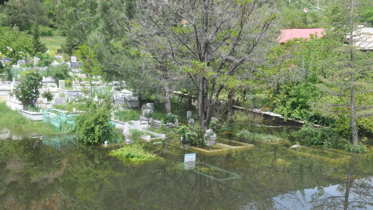 Mahalleli, 70’i aşkın, çoğu sulara gömülen mezarın, başka alana nakledilip, ani taşkınlara karşı önlem alınmasını istedi.