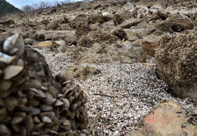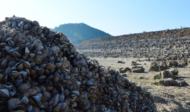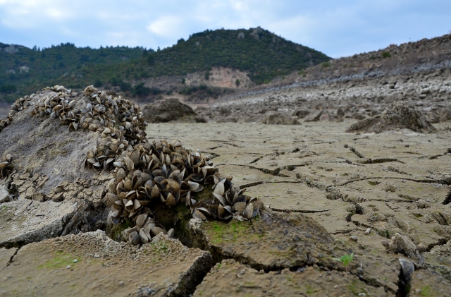 Çanakkale'nin içme ve kullanma suyunu karşılayan Atikhisar Barajı'nda kuraklık nedeniyle doluluk oranı yüzde 28'e kadar düşünce, baraj yatağındaki taşlara tutunan milyonlarca midye gün ışığına çıktı. 54 milyon metreküp hacme sahip olan ancak su miktarı kasım ayı itibarıyla 15 milyon metreküpe kadar gerileyen baraj yatağı, midye tarlasını andırırken, toprak zemindeki çatlaklar kuraklığın boyutlarını gösteriyor.