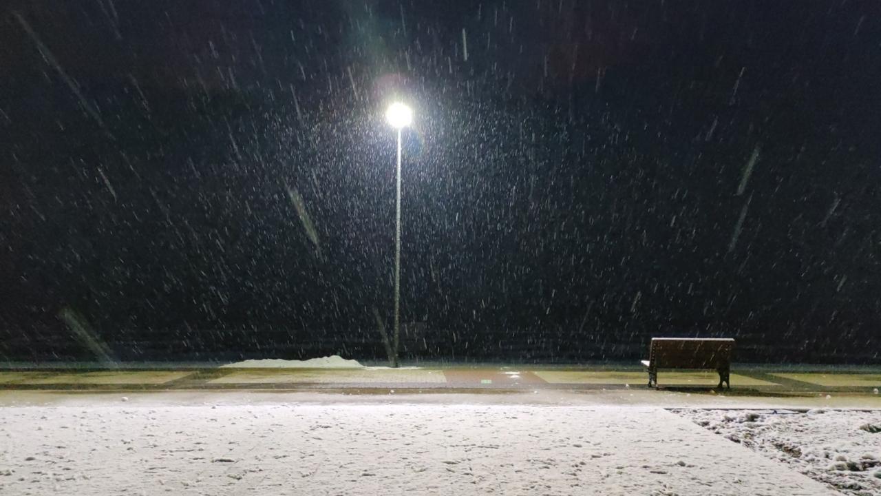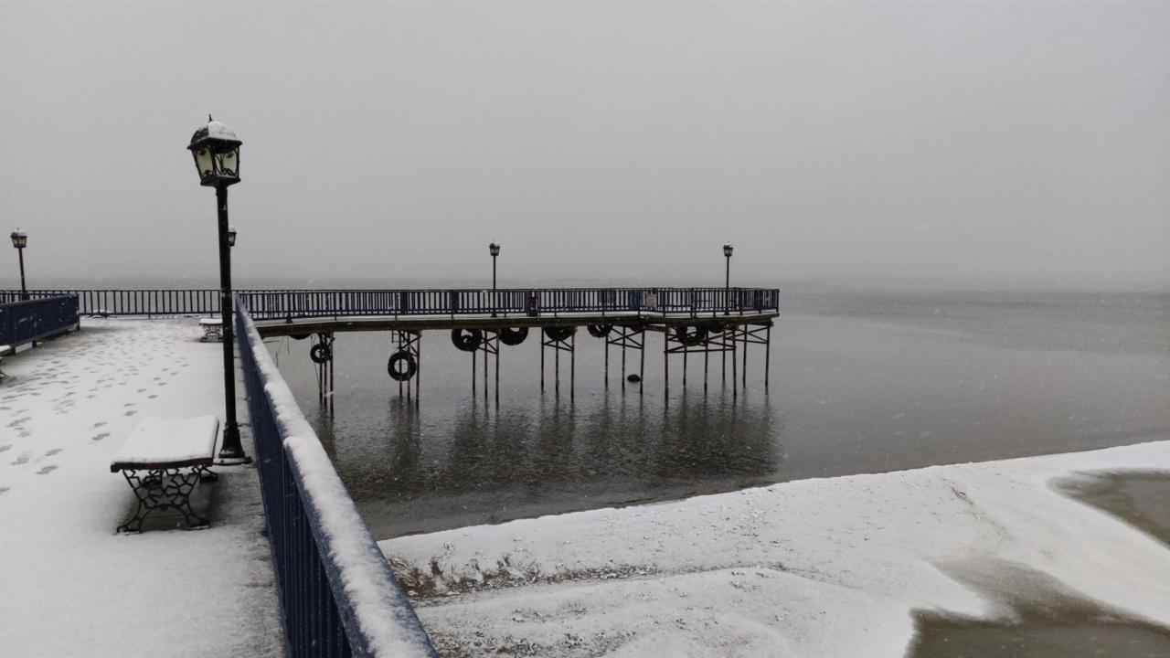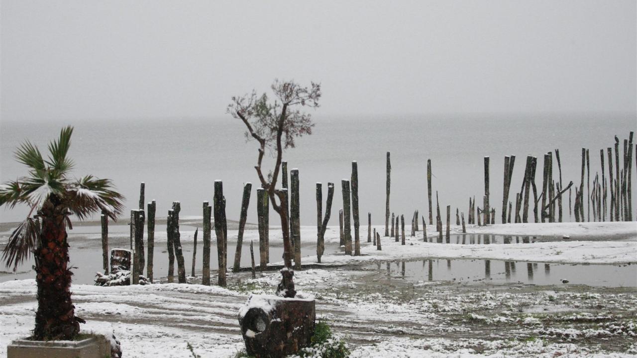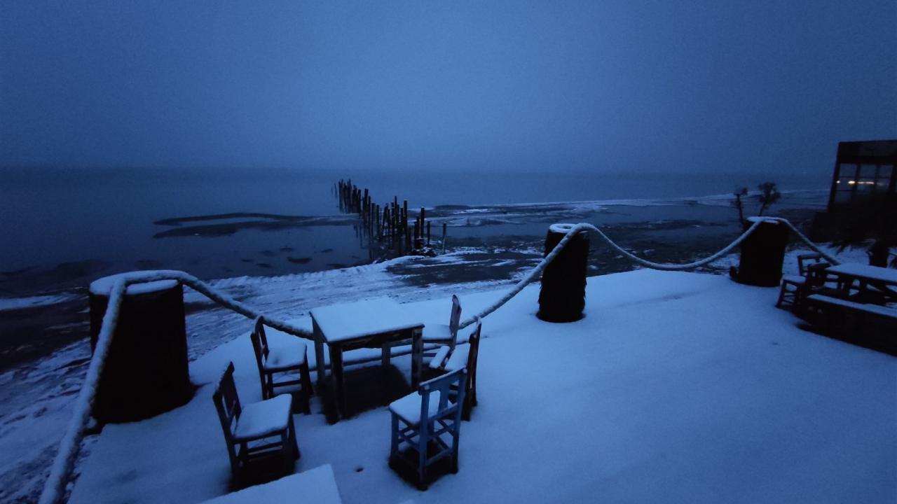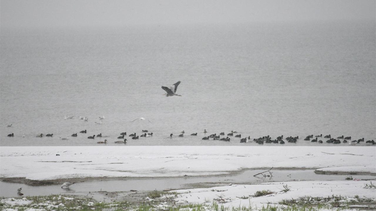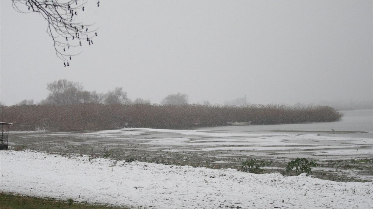 Suyu çekilen İznik Gölü'nde kar yağışı