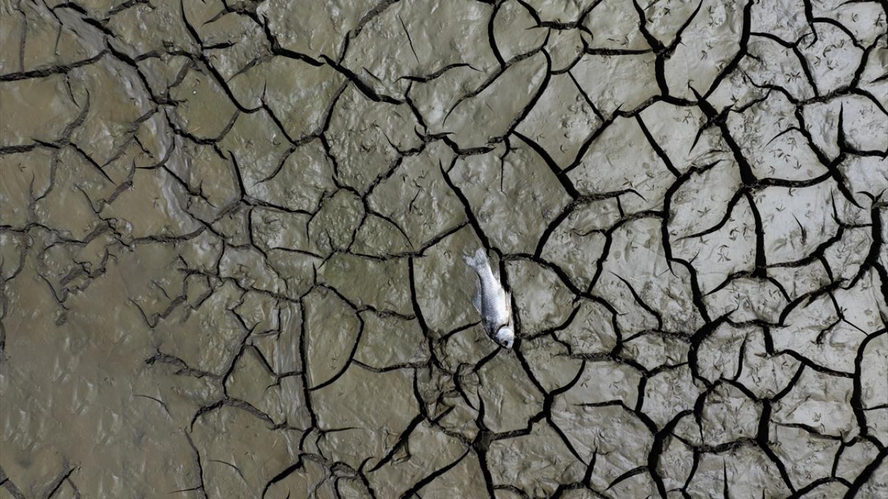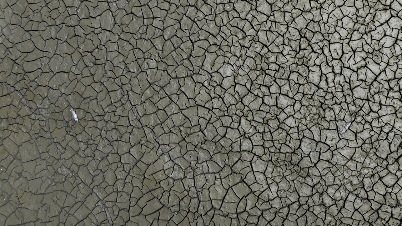 Gaziantep’in İslahiye ilçesindeki Tahtaköprü Barajı’nda su seviyesinin düşmesiyle çok sayıda balık ölürken, baraj suları altında kalan Hamamlar Höyüğü’ndeki tarihi yapılar gün yüzüne çıktı.