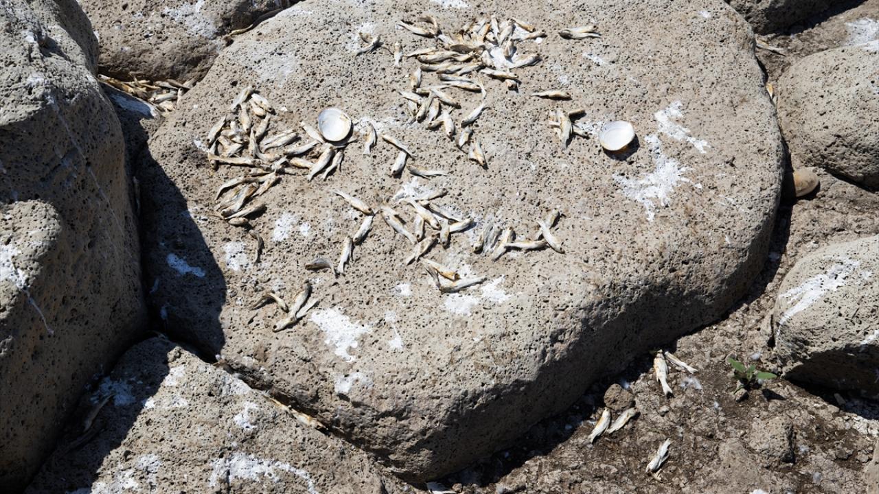 Su çekilmesiyle birlikte höyükte taş duvar kalıntıları ve yapı izleri ortaya çıkarken, yaşanan balık ölümleri ekolojik denge açısından endişe yaratıyor.