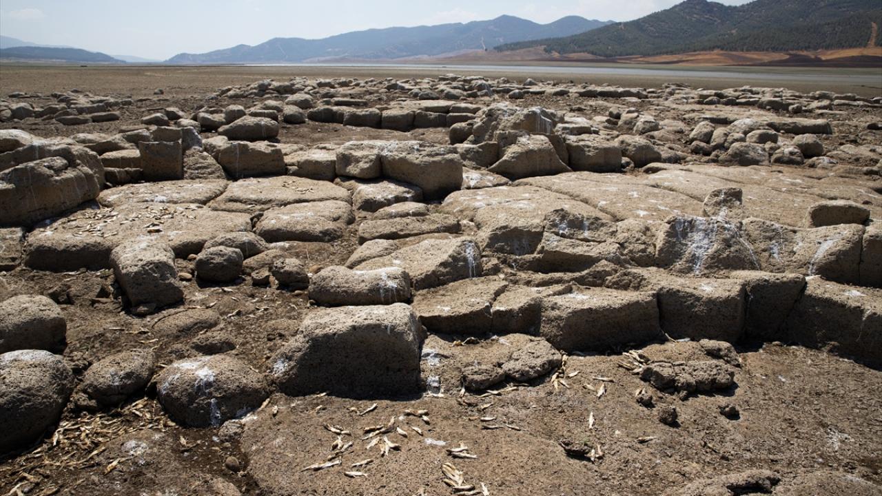 Suyun azaldığı Tahtaköprü Barajı'nda arkeolojik alanlar ortaya çıktı
