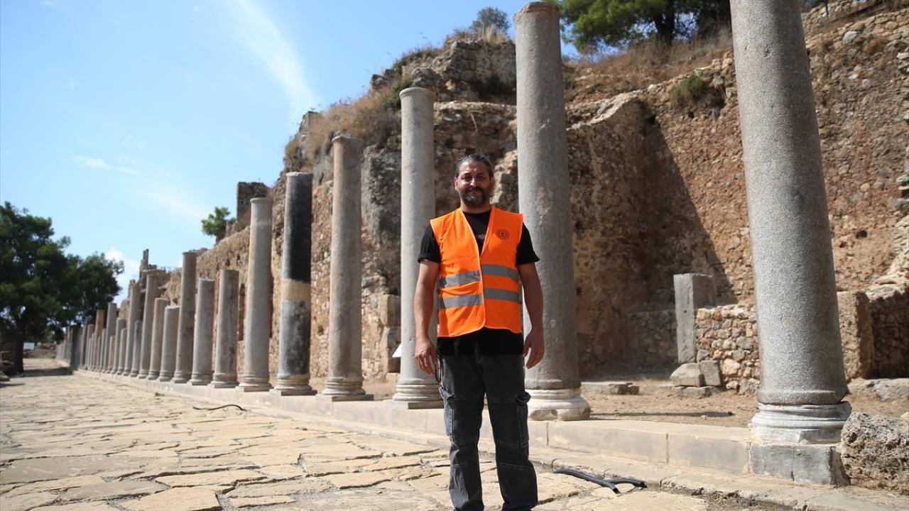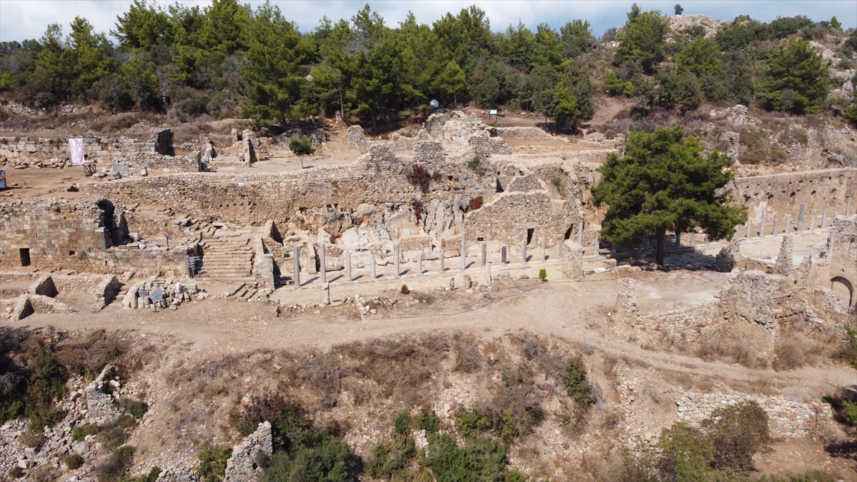 Kentin, Herakles`in (Herkül) 12 görevinin betimlendiği 164 metrekare taban mozaiğiyle de öne çıktığını belirten Ergürer, "Kentin merkezindeki Sütunlu Cadde, kentin en önemli ve görkemli kalıntıları arasında yer alıyor. 1994-1999 tarihlerindeki ilk kazılarla büyük bölümü açığa çıkarılan caddede, Bakanlığımızın desteğiyle 2023`te restorasyon çalışmalarına başladık. Bu kapsamda eksik kalan bölümlerde kazılar yaptık. Kentin orijinal döşemeleri tamamlandı. Daha sonra tamamı orijinal sütunlar, yol boyunca yerleştirildi ve kentin merkezi eski görkemli günlerine kavuştu." dedi.