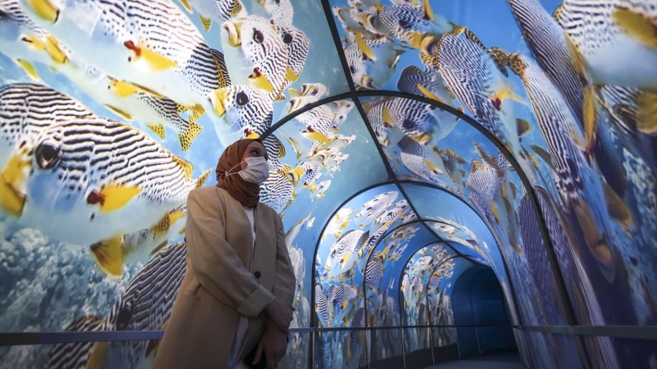 Üçüncü katta bulunan Bilim Tüneli`nde ise Türkiye`nin jeolojik miras alanları, Güney Afrika`nın safari parkları, deniz altındaki resiflerde gözlenen biyolojik çeşitlilik ve çiçeklerin renkli dünyası izlenebiliyor.