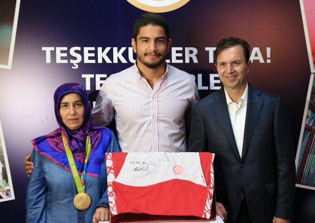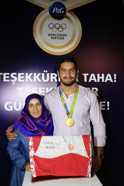 Milli güreşçi Taha Akgül, 2016 Rio Olimpiyat Oyunları'nda altın madalya kazandığı müsabakada giydiği mayoyu, P&G Olimpiyatlar Sergisi'ne hediye etti. Taha Akgül, annesi Gülbahar Akgül ile Akasya Acıbadem Alışveriş Merkezi'ndeki sergide düzenlenen törene katıldı.