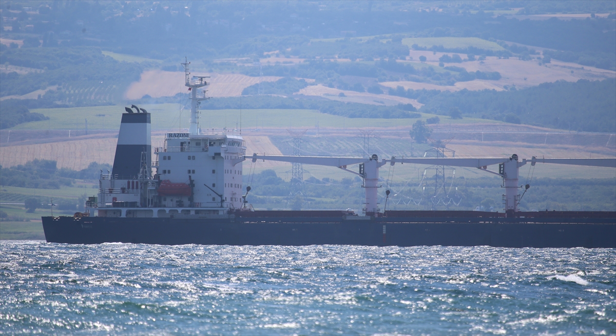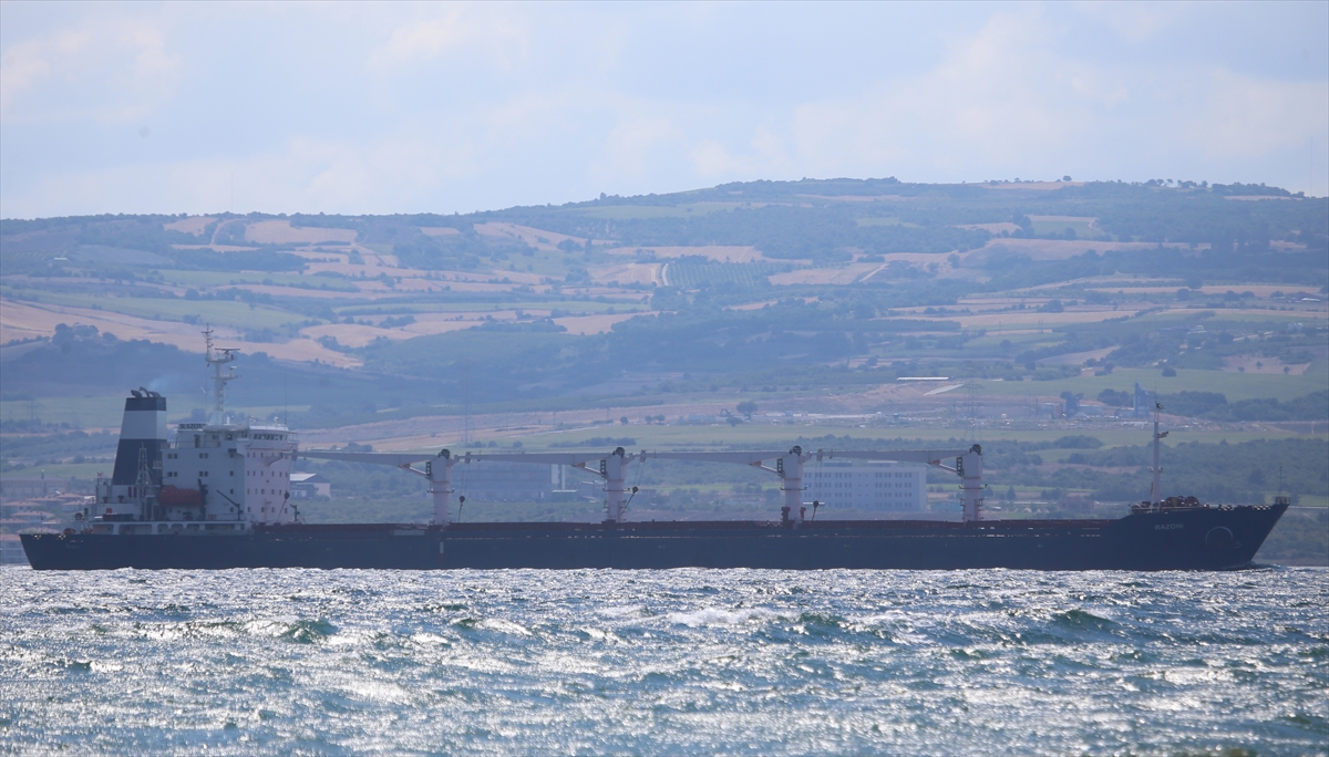 Ukrayna'nın Odessa Limanı'ndan Lübnan'ın Tripoli Limanı'na doğru yola çıkan "Razoni" adlı mısır yüklü gemi, Çanakkale Boğazı'na ulaştı.