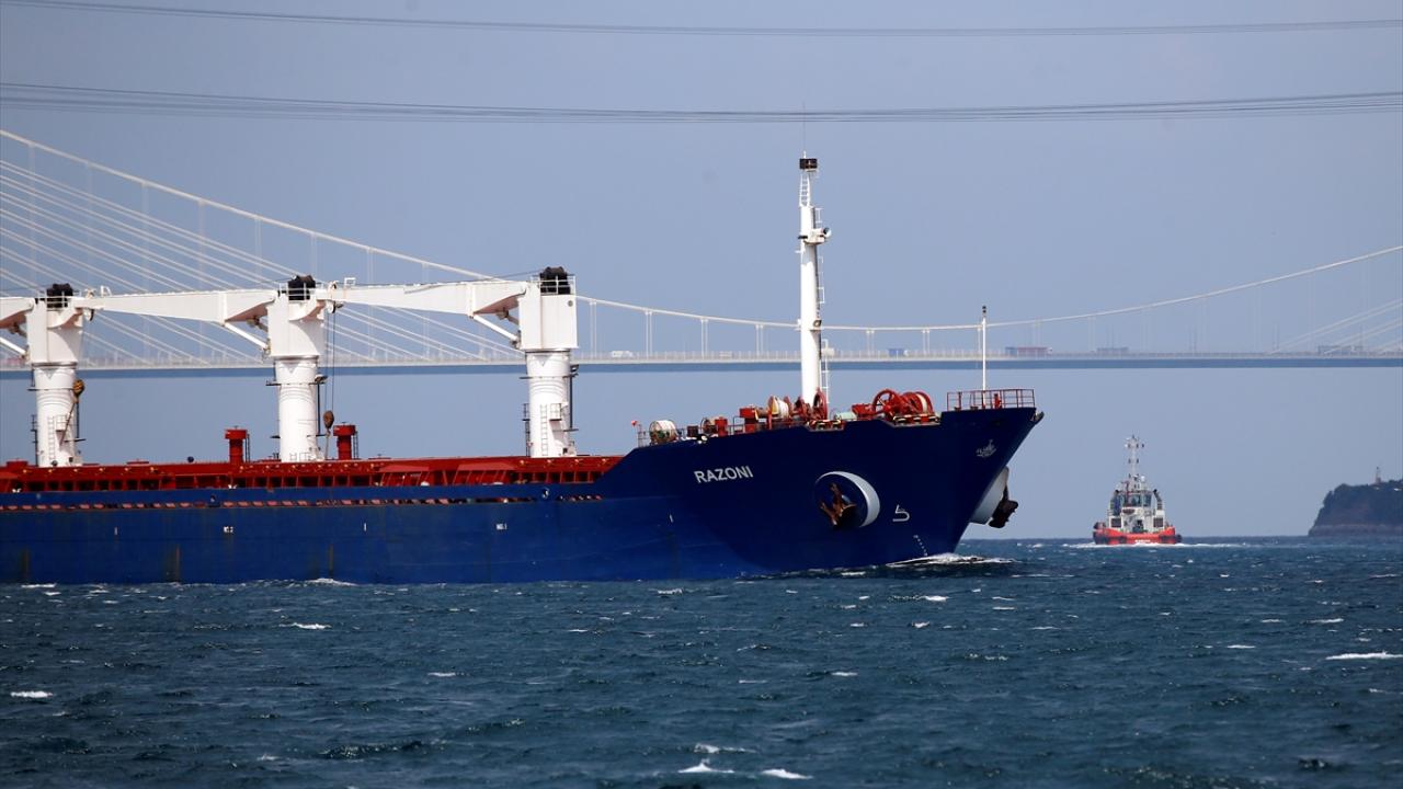 Ukrayna'nın tahılını taşıyan Sierra Leone bayraklı, "Razoni" adlı gemi, Müşterek Denetim Timi'nin müşterek incelemesinin ardından İstanbul Boğazı`nı geçti. 27 bin ton mısır taşıyan geminin rotası Lübnan...