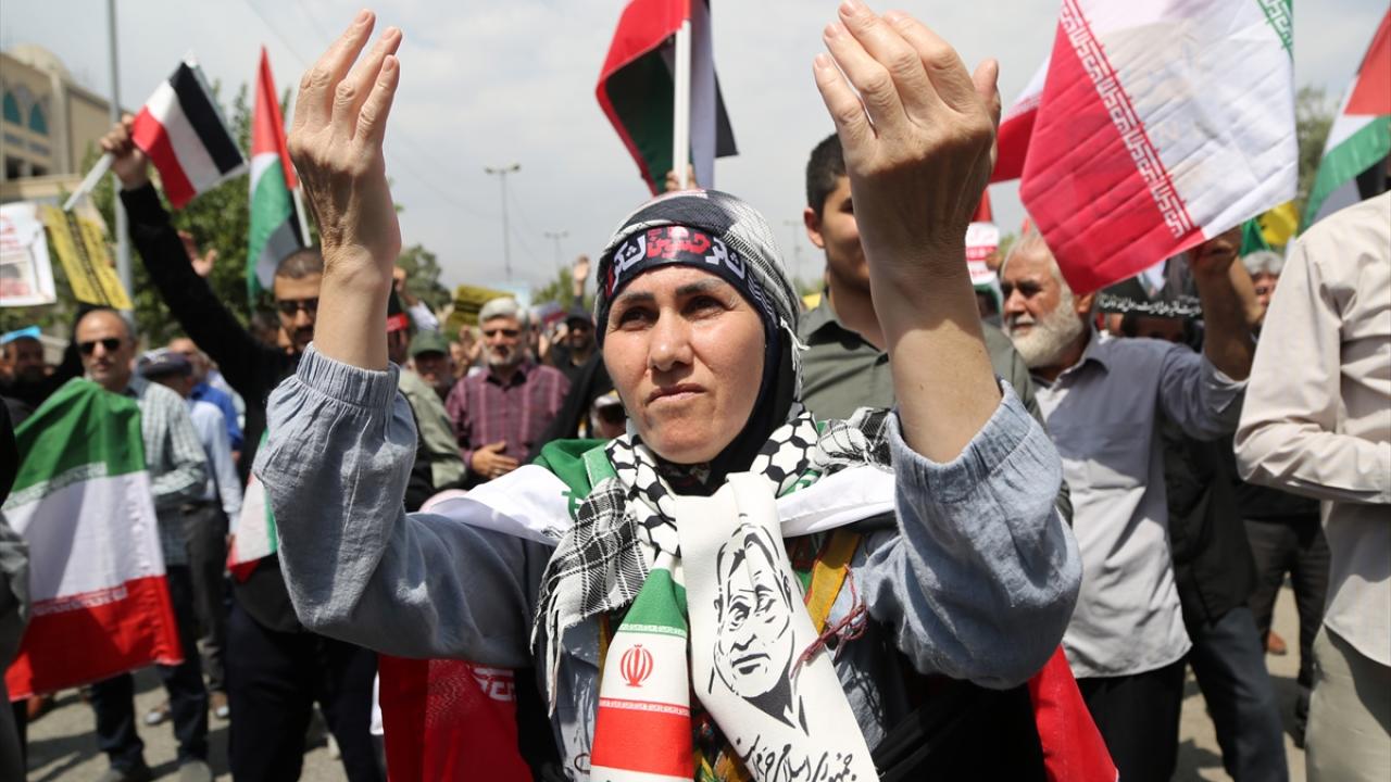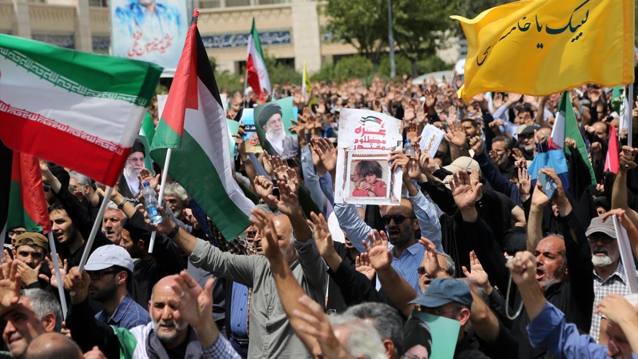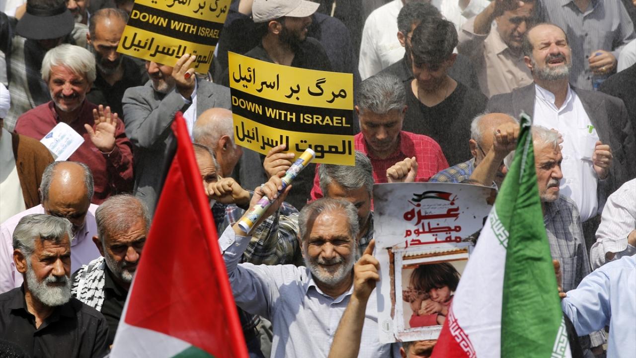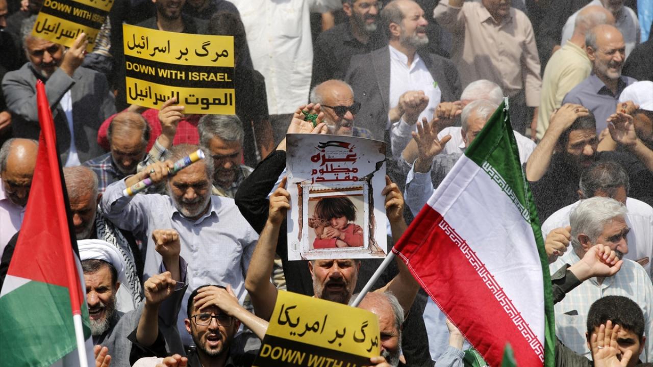 İsrail'in Gazze'de devam eden soykırım ve savaş suçları İran'ın başkenti Tahran'da Cuma namazı sonrası düzenlenen yürüyüşle protesto edildi.