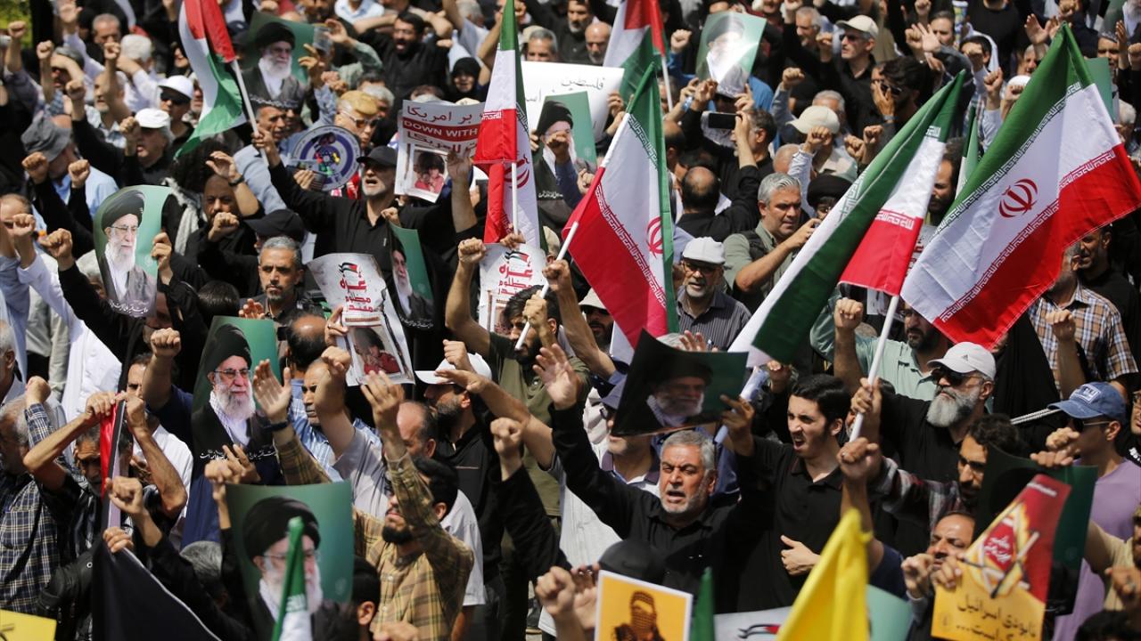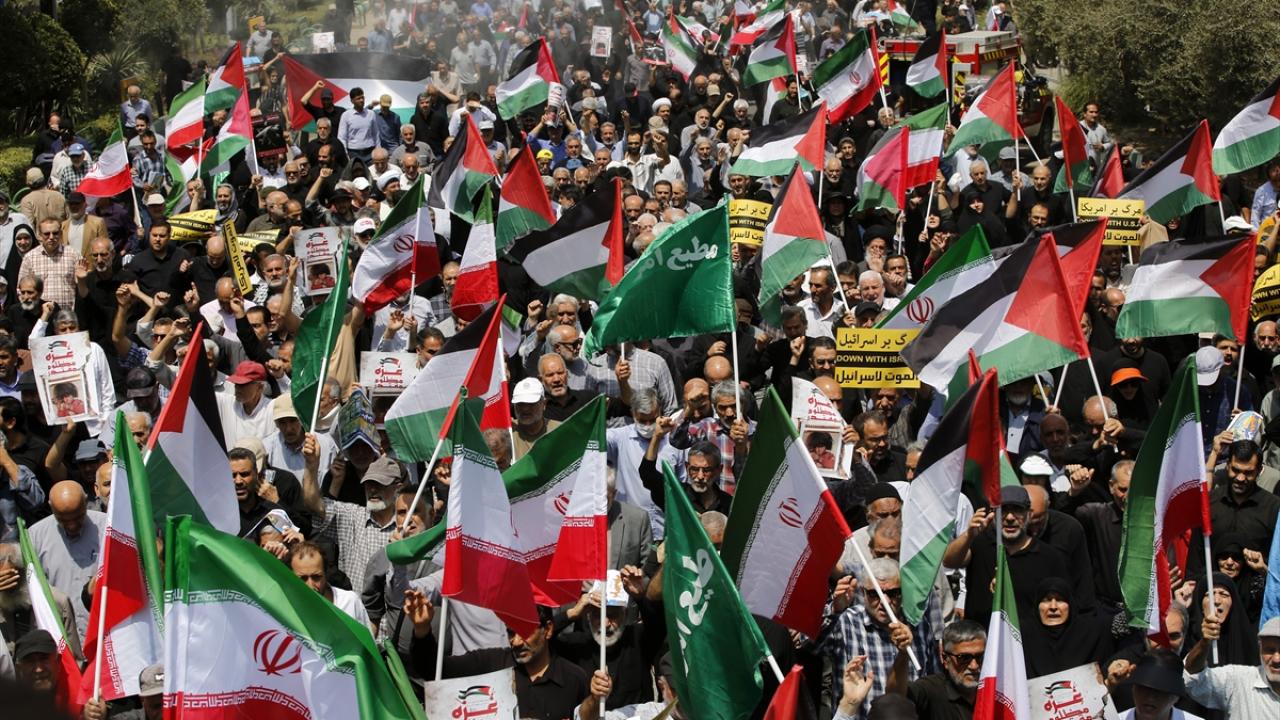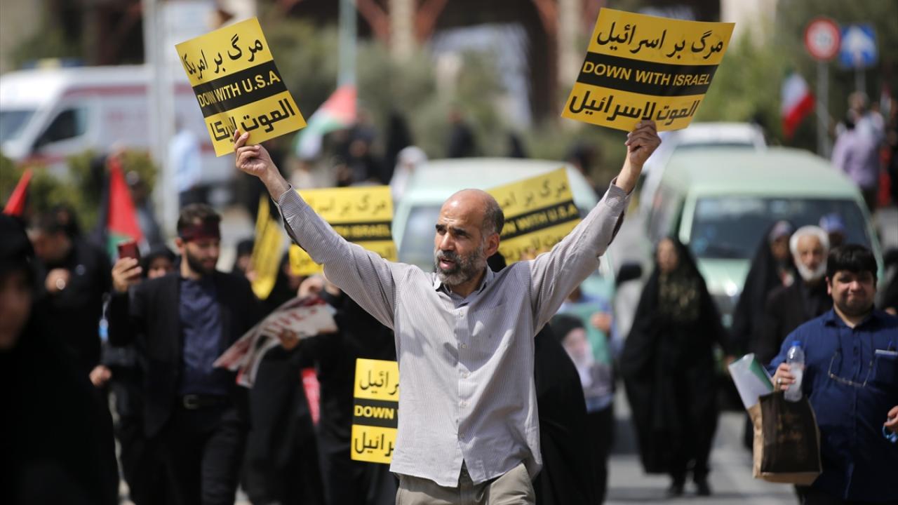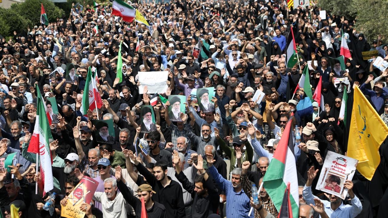 İsrail'in Gazze'de devam eden soykırım ve savaş suçları İran'ın başkenti Tahran'da Cuma namazı sonrası düzenlenen yürüyüşle protesto edildi.