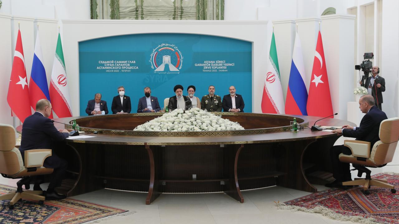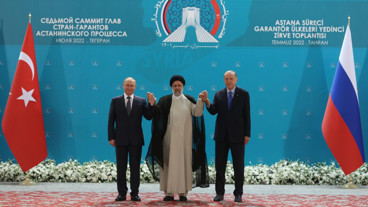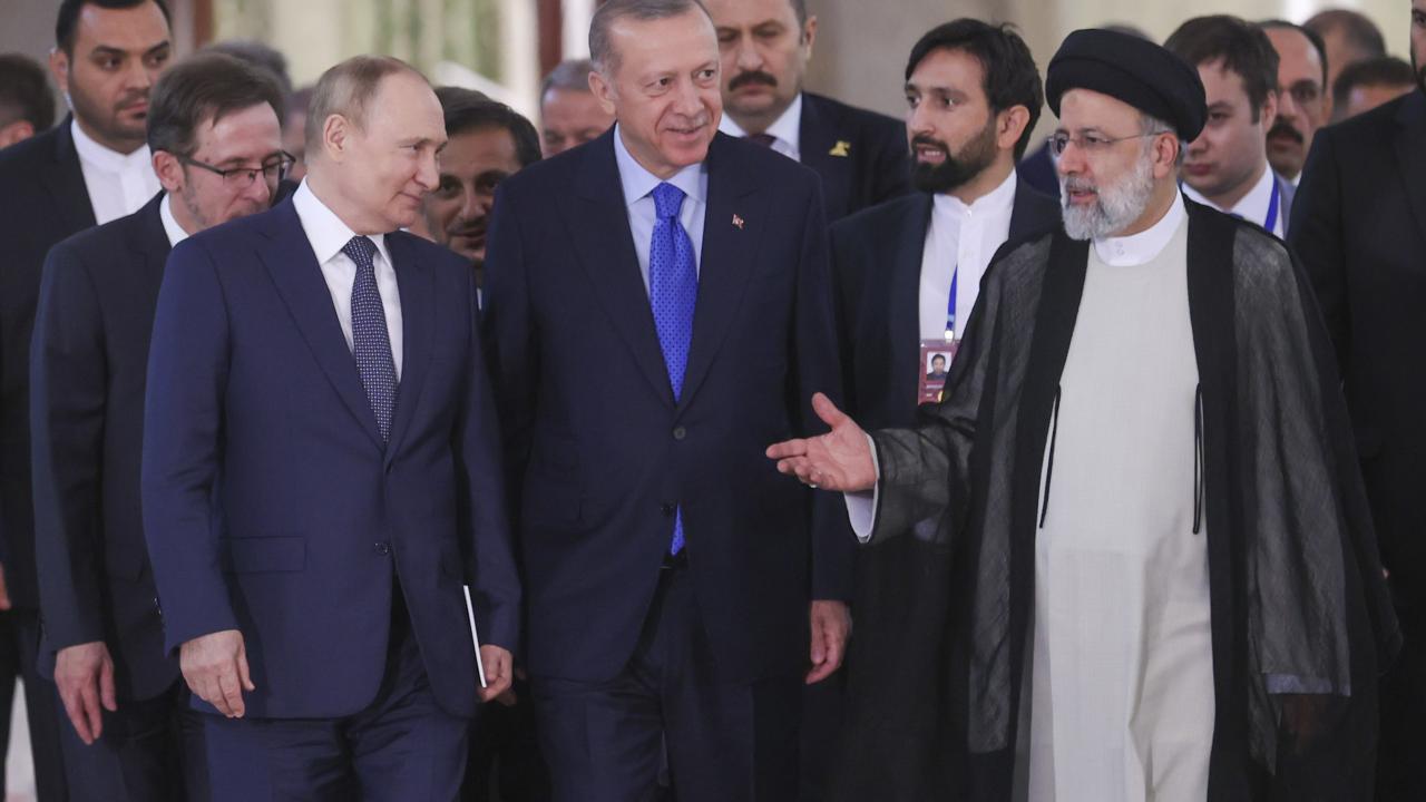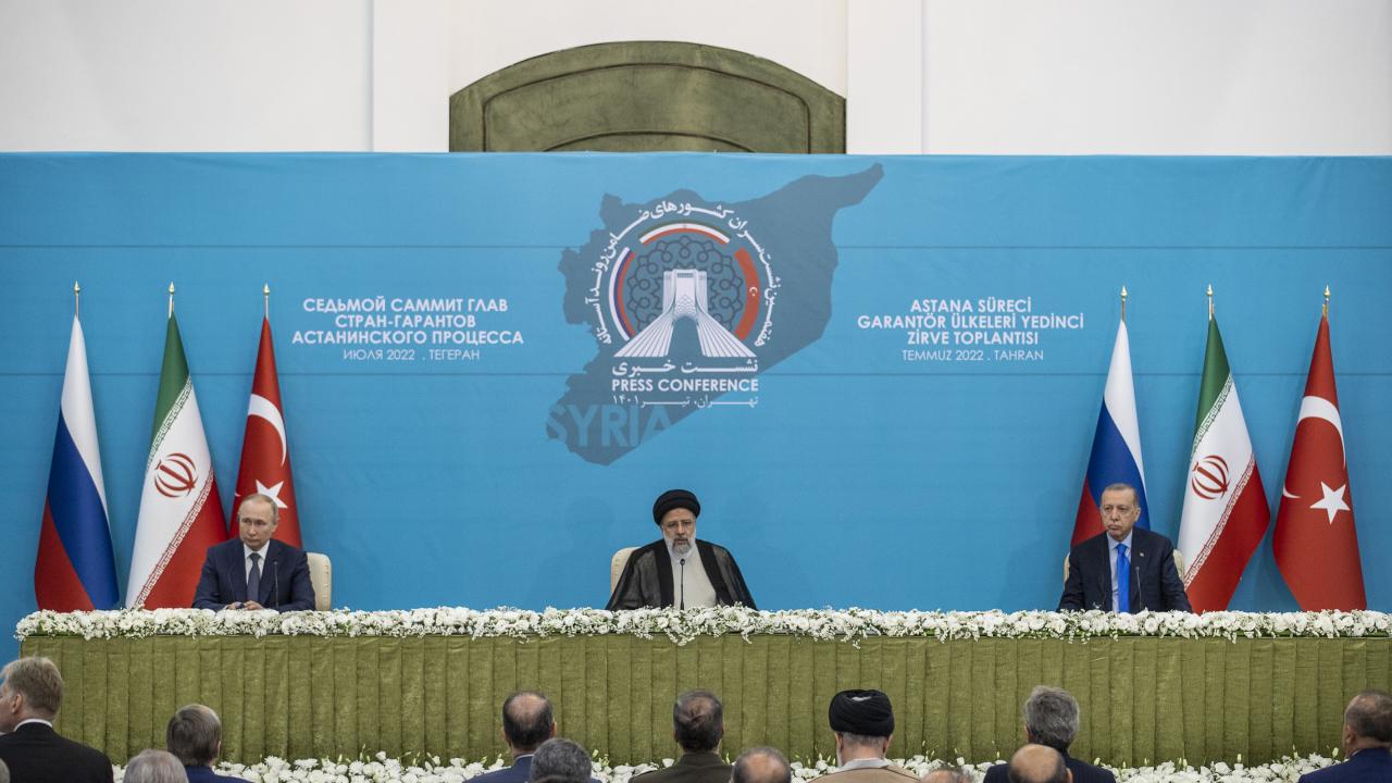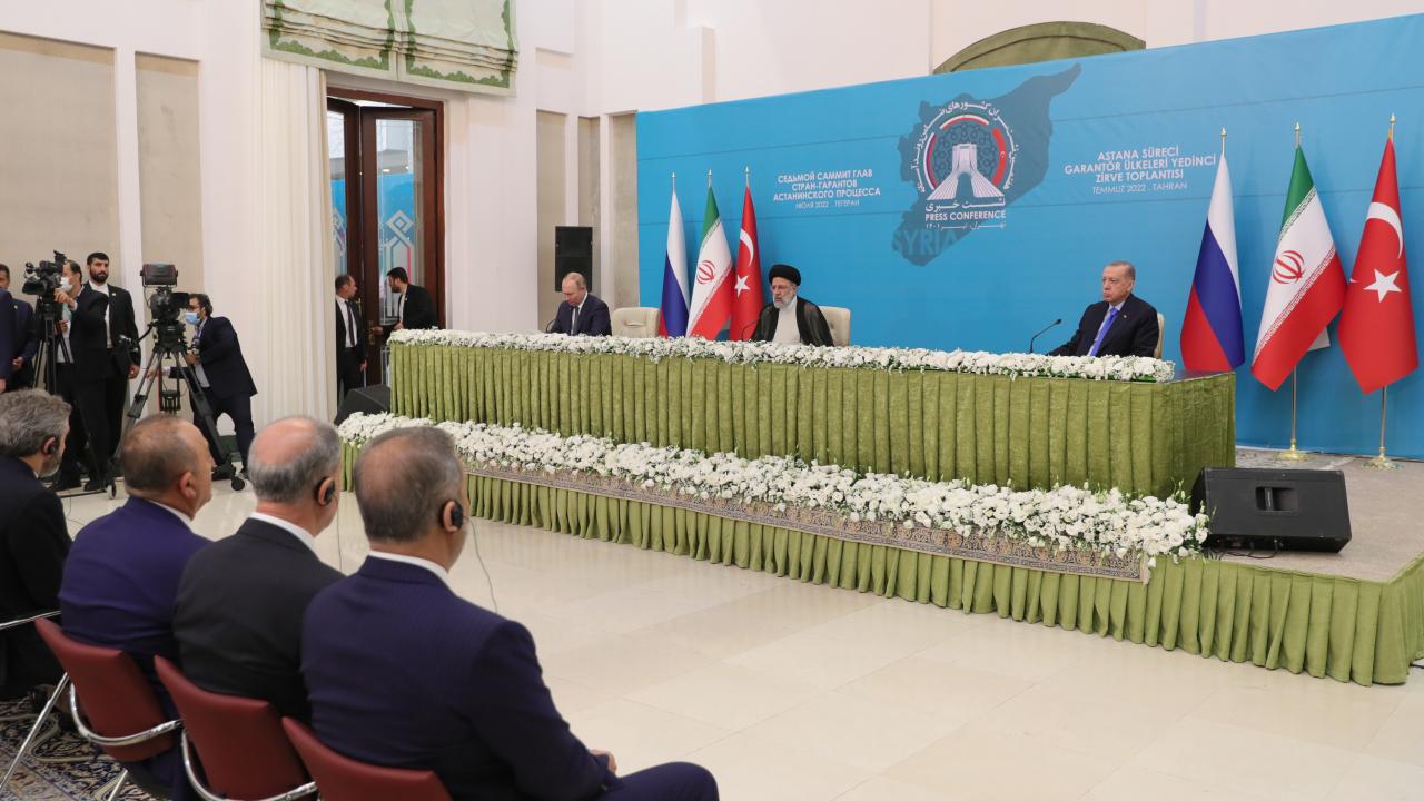 Cumhurbaşkanı Recep Tayyip Erdoğan ile İran Cumhurbaşkanı İbrahim Reisi ve Rusya Devlet Başkanı Vladimir Putin, Türkiye-İran-Rusya üçlü zirvesinin ardından ortak basın toplantısı düzenledi.