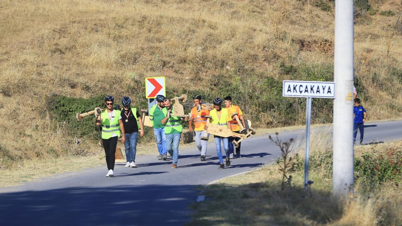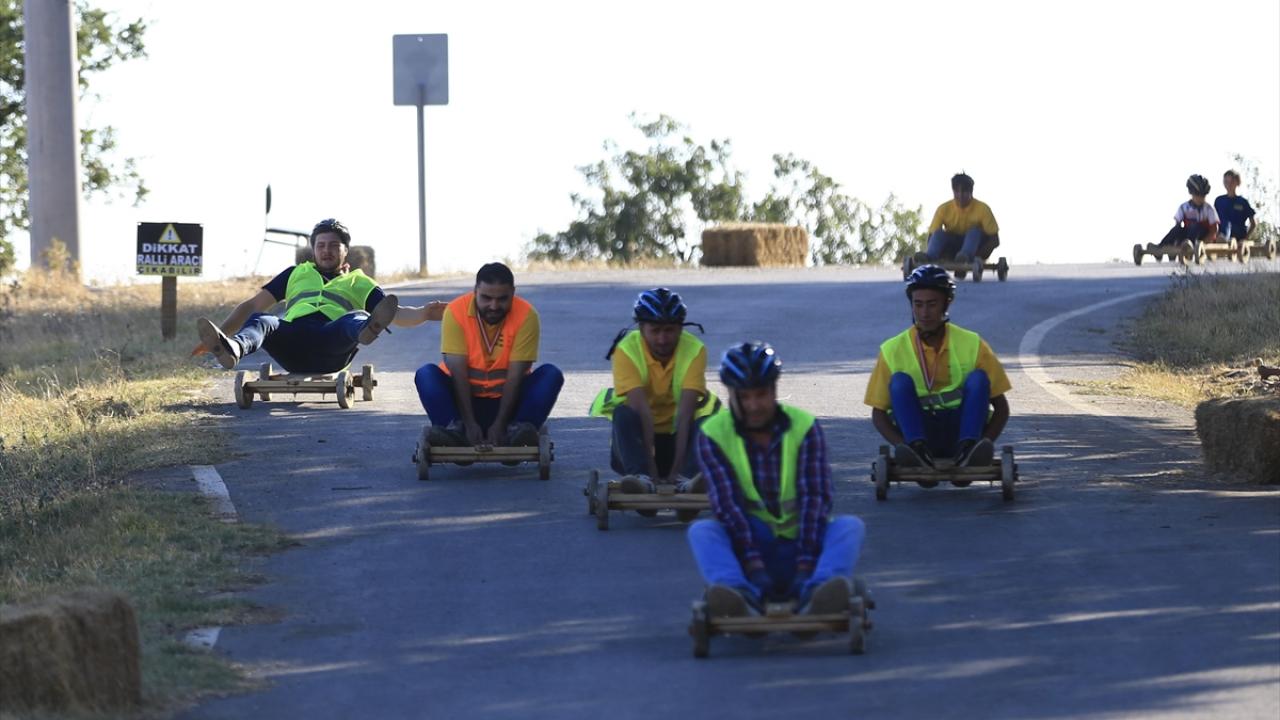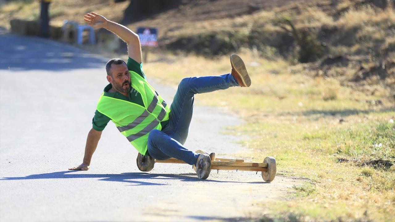 Ayaklarla yönlendirilen ve fren aksamı da bulunmayan tahta arabalara binen yarışmacılardan bazıları parkuru tamamlarken, bazıları da dengesini kaybederek düştü.