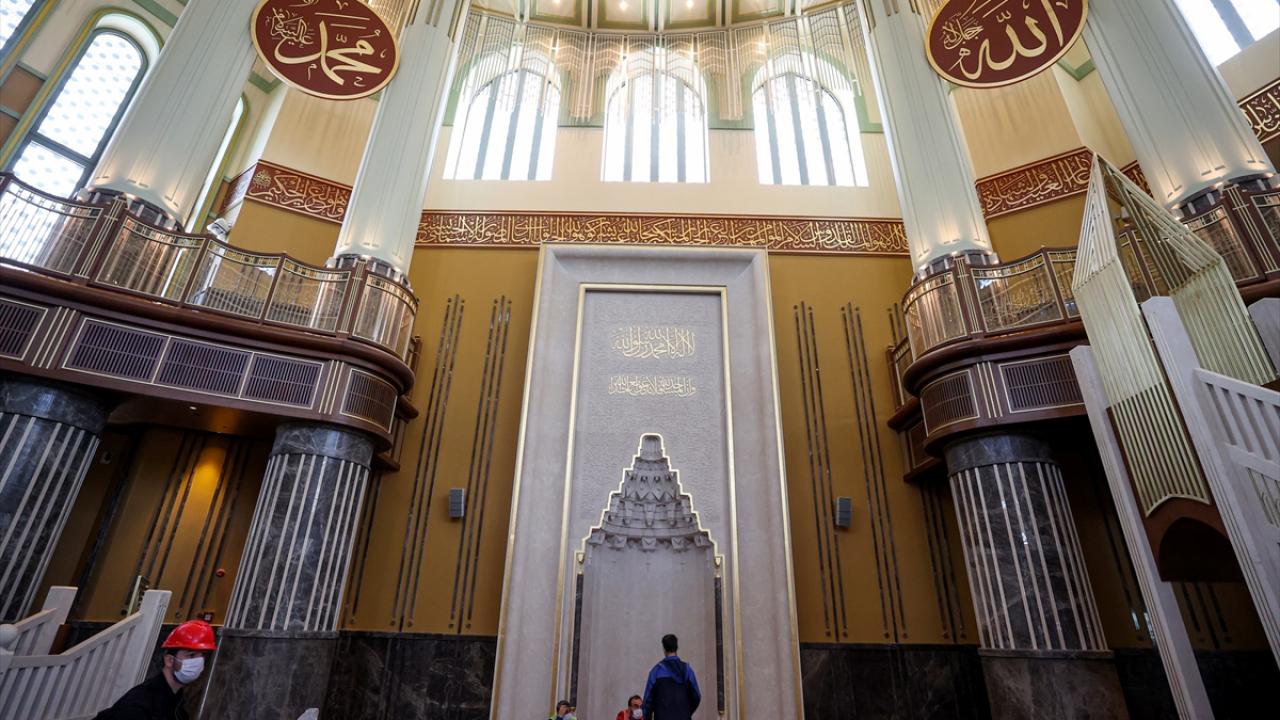 Mihrap, minber ve vaaz kürsüsünün yapımı da tamamlandı. Cami için 8,5 metre yüksekliğinde mihrap tasarlandı. Mihrabın yüzeyine Esma`ül Hüsna, mihrabın ortasında Kelime-i Tevhid yazıldı. Alt bölümüne ise Cin Süresi`nin 18. ayetinin "Şüphesiz, mescitler yalnız Allah`ındır. Allah ile beraber hiçbir kimseye yalvarmayınız." şeklindeki Türkçe meali yazıldı.