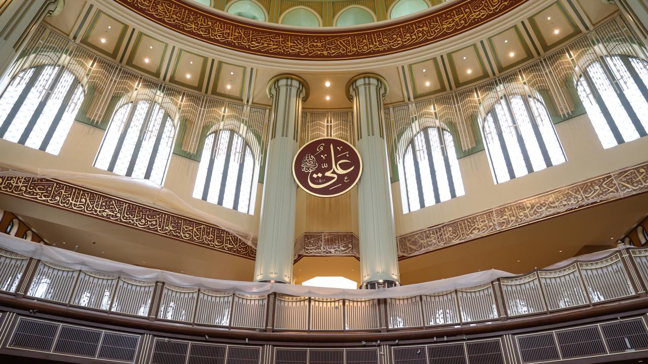 Caminin içerisinde yer alacak 6 hat levhanın ilki olan "Allah" lafzı asıldı, diğer levhaların montajı için ise çalışmalar devam ediyor.