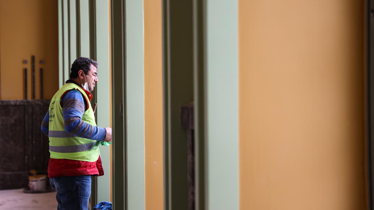 Caminin içerisindeki boyama işlemleri tamamlandı. Namaz alanı ahşap duvar kaplamaları ve camlara korkuluk takma işleri bitti. Camide yer alan iskeleler ise söküldü.