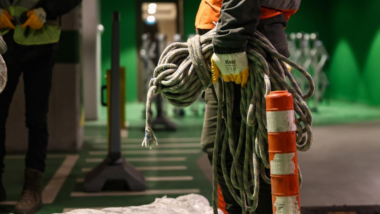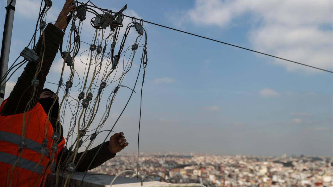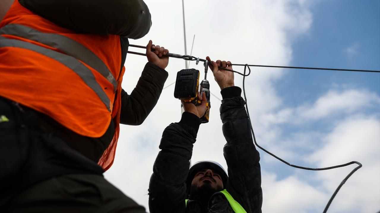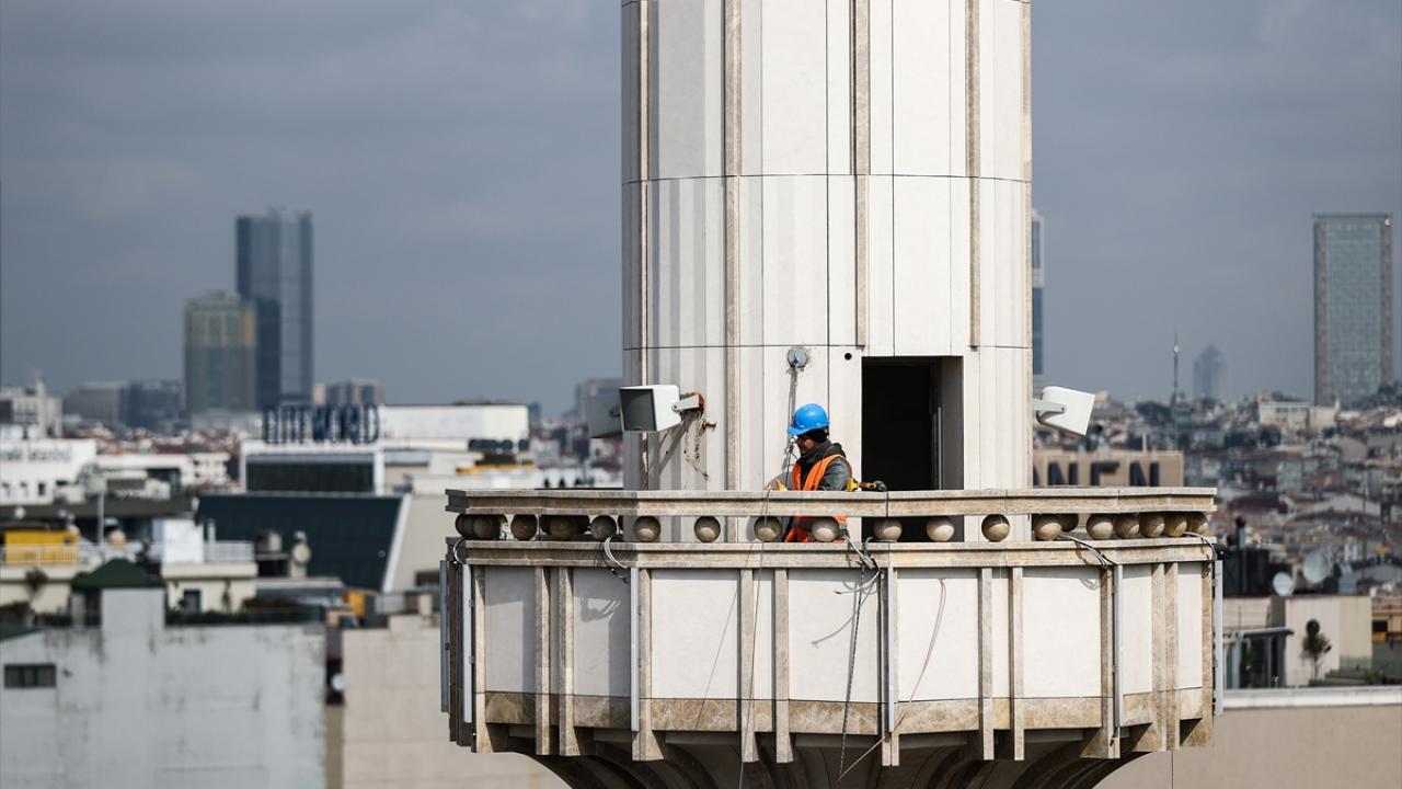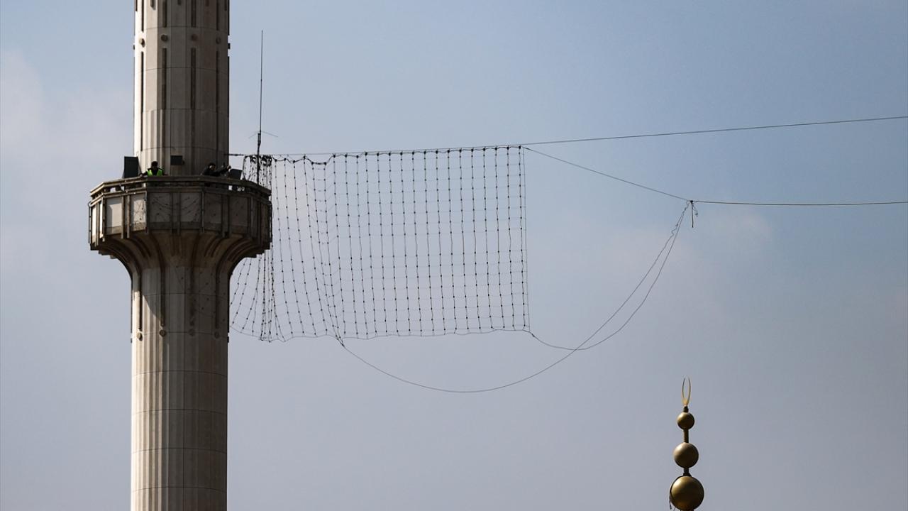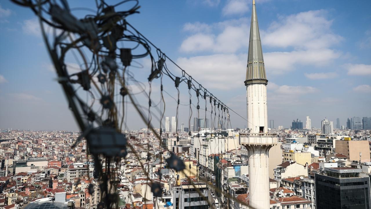 Bu kapsamda, İstanbul`un yeni sembollerinden biri olarak kabul edilen Taksim Camii`nin şerefelerine çıkarılan "Elhamdülillah" yazılı mahya, iki minarenin arasına çekilerek asıldı.