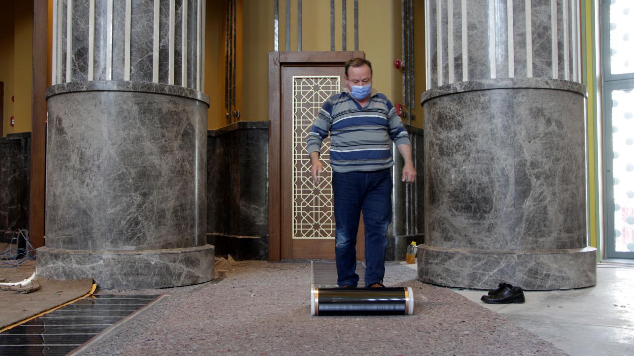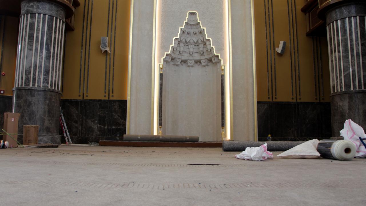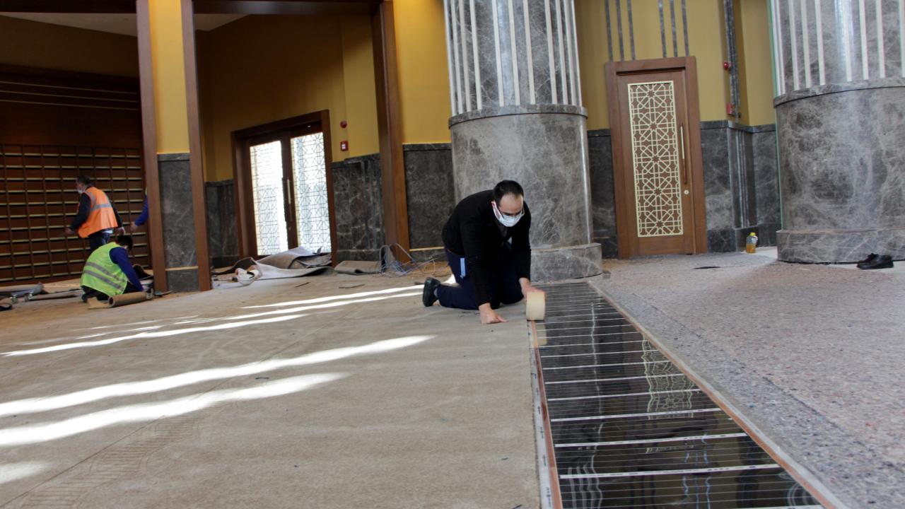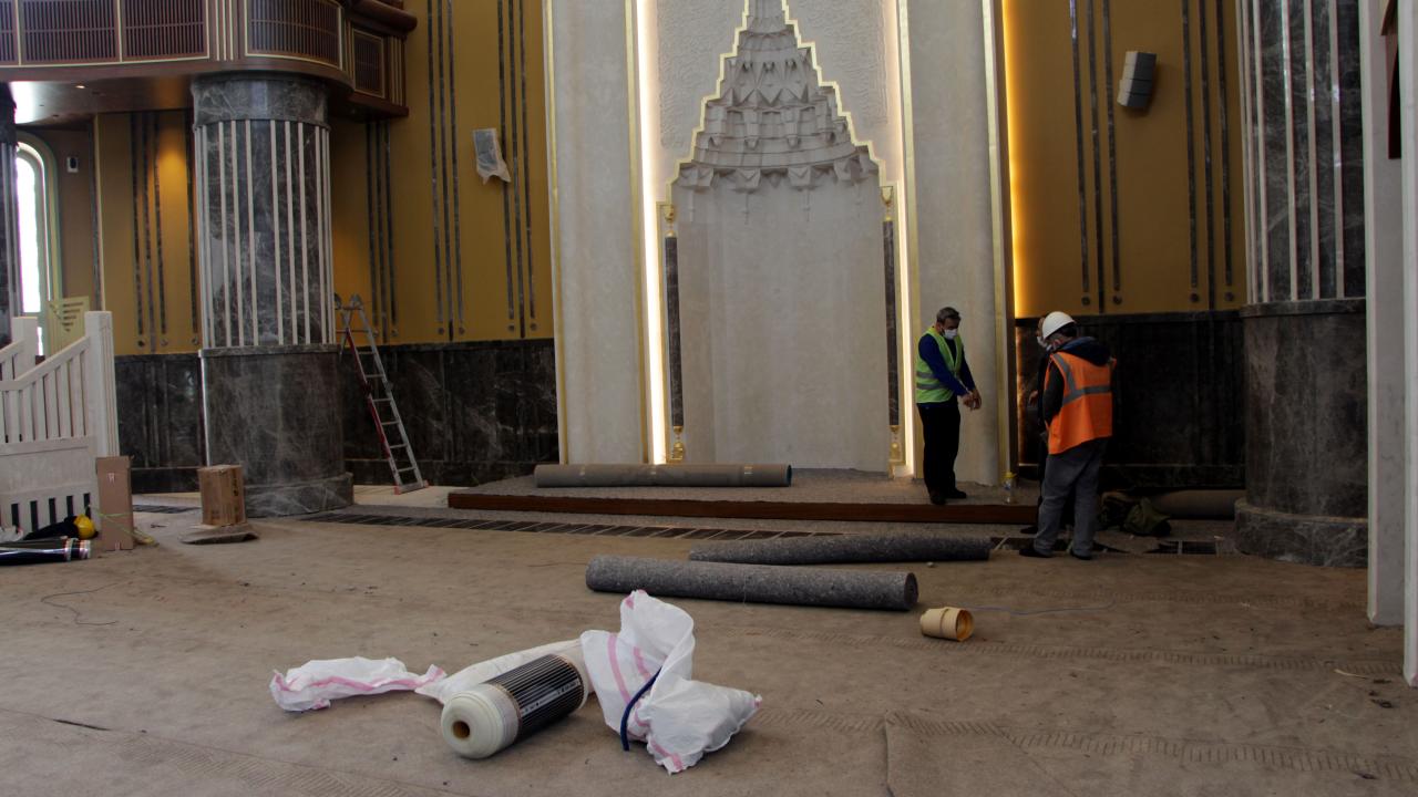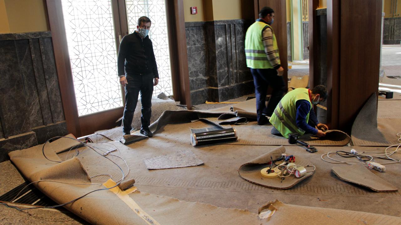 Rulolar halinde camiye getirilen 3500 metrekare halı, cumartesi günü itibariyle serilmeye başlandı.