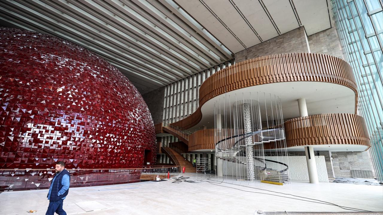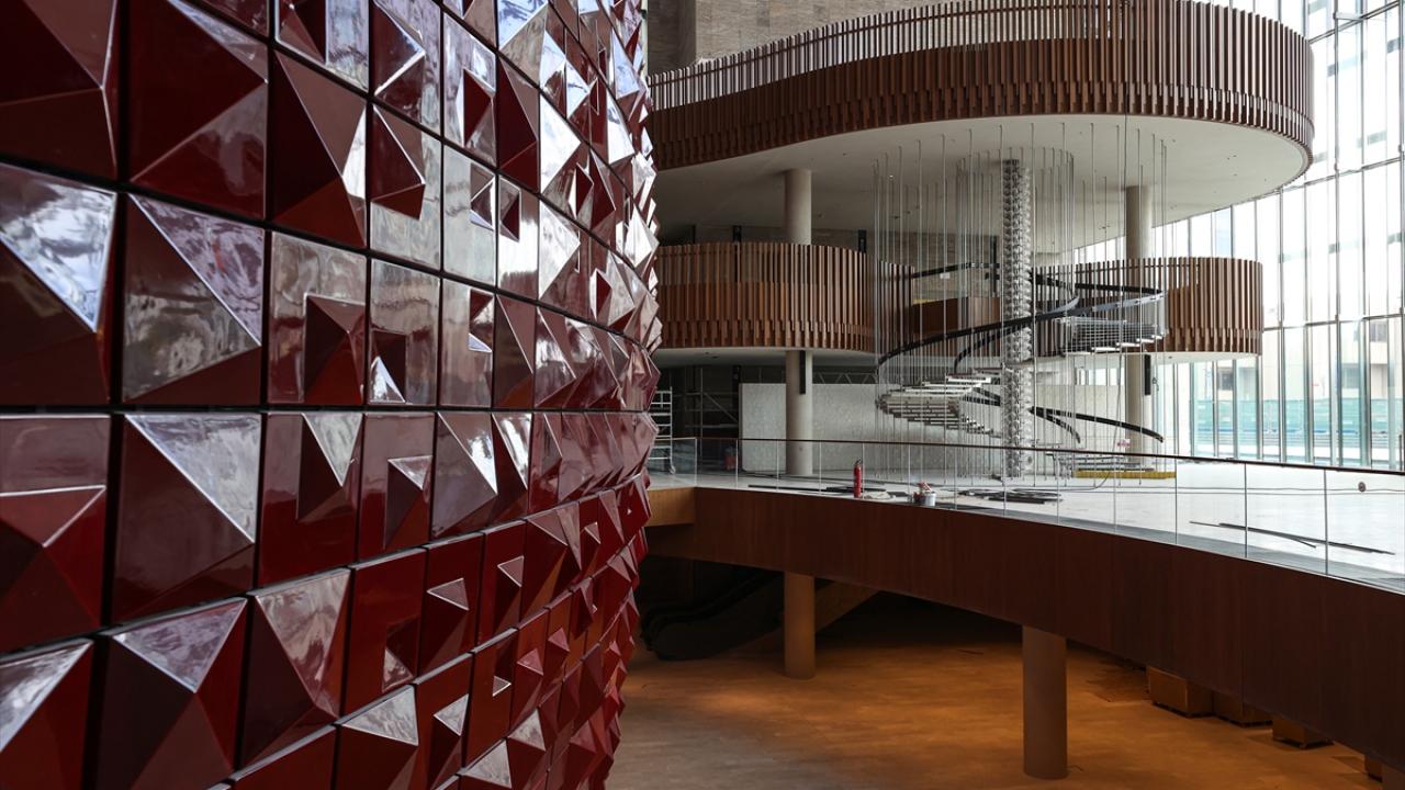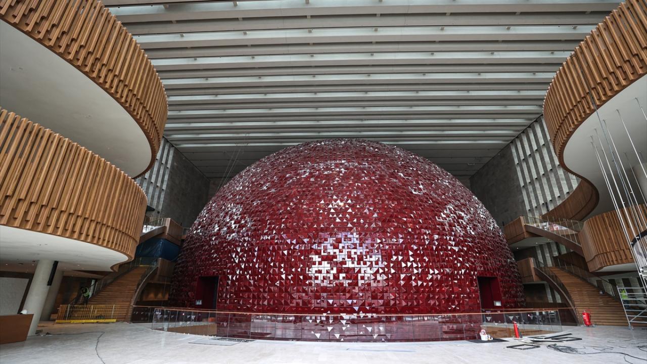 AKM`nin girişinde yer alan opera küresi, 15 bin özel el yapımı kırmızı seramik kullanılarak yapıldı.