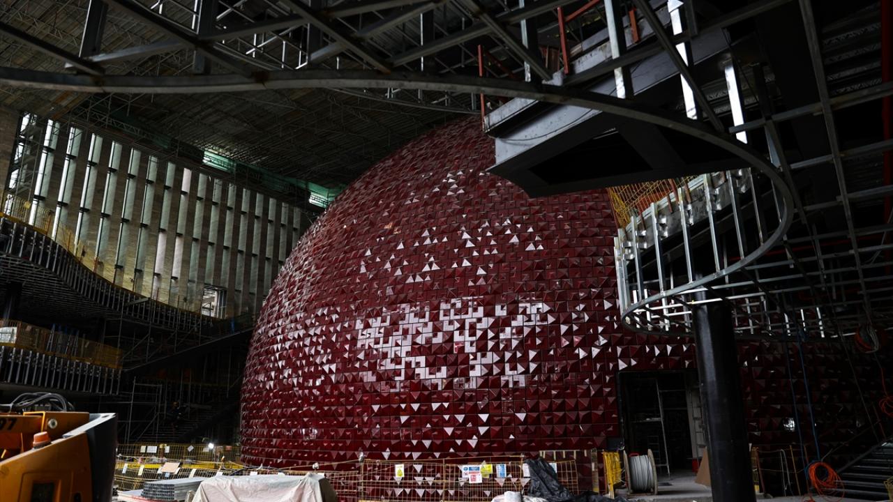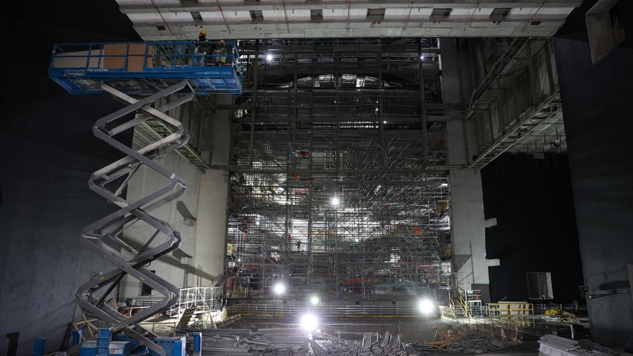 Yeni AKM`nin bina dışı ve çatı işlerinde sona yaklaşıldı. AKM`de kullanılan ahşap kaplamaların ve sahne sisteminde kullanılacak motorların montajına başlandı.