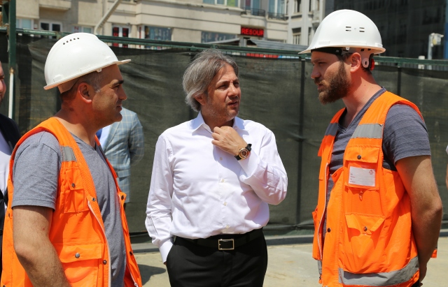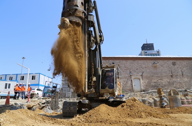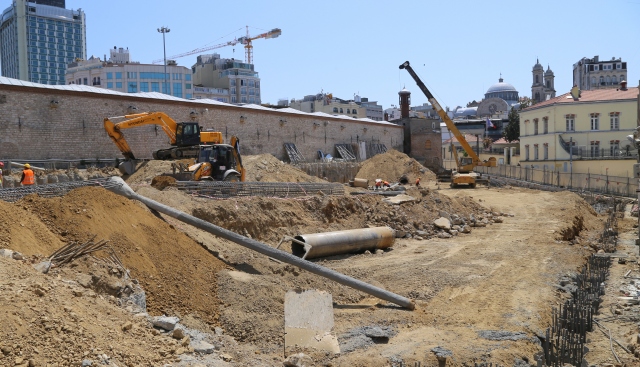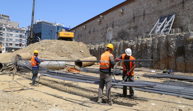 Taksim'e yapılması planlanan ve 17 Şubat'ta temeli atılan caminin inşaatı devam ediyor. Caminin yapılacağı alanın etrafına beton kazık çatma işlemi bitme aşamasına geldi. Yaklaşık 2 bin 482 metrekarelik alanda yapılacak ve altında kültür sanat merkezi ile kapalı otoparkların inşa edileceği cami projesini üstlenen Sur Yapı personeli, çalışmalarını ara vermeden sürdürüyor. Caminin yapılacağı alanda, toplam 336 beton kazıktan 262'si çatıldı.